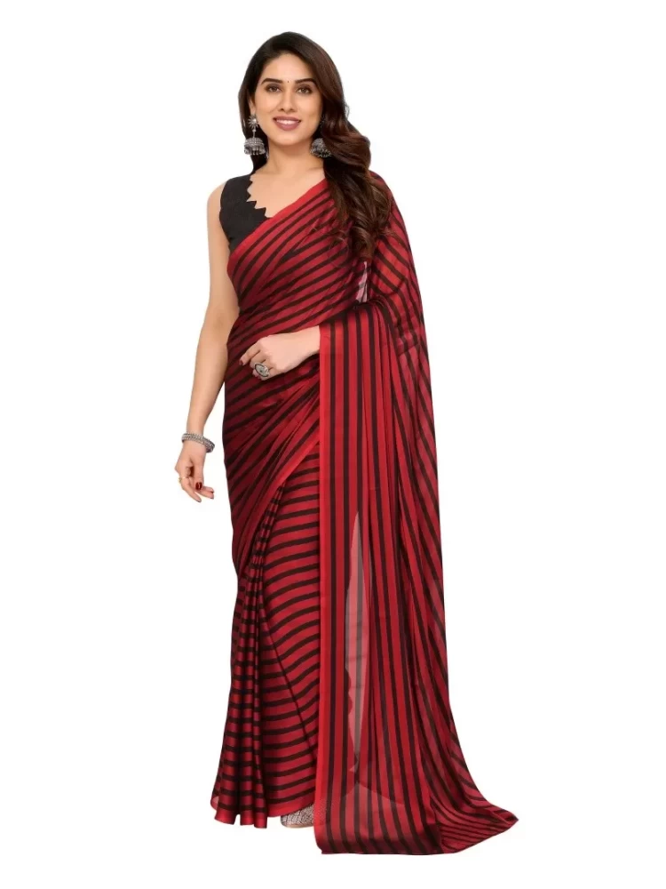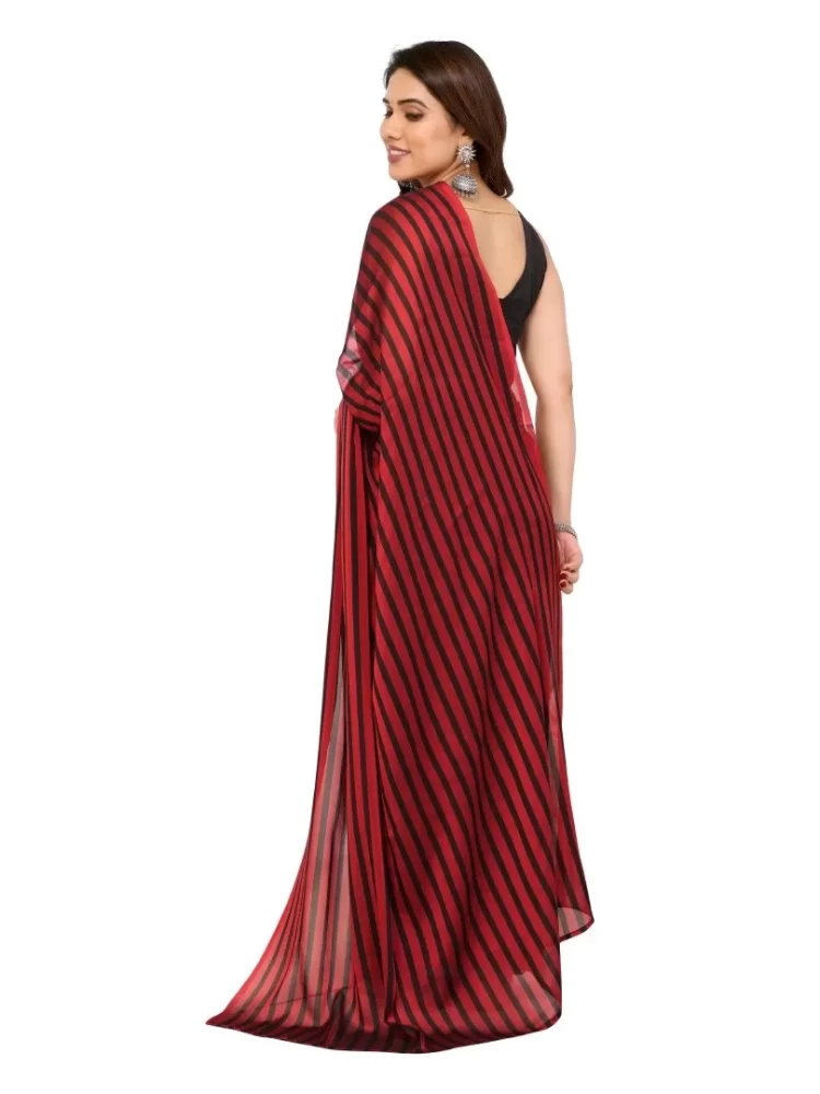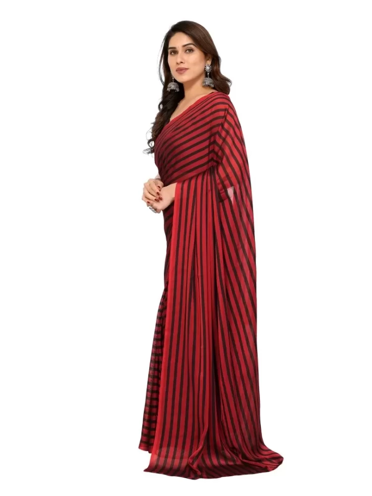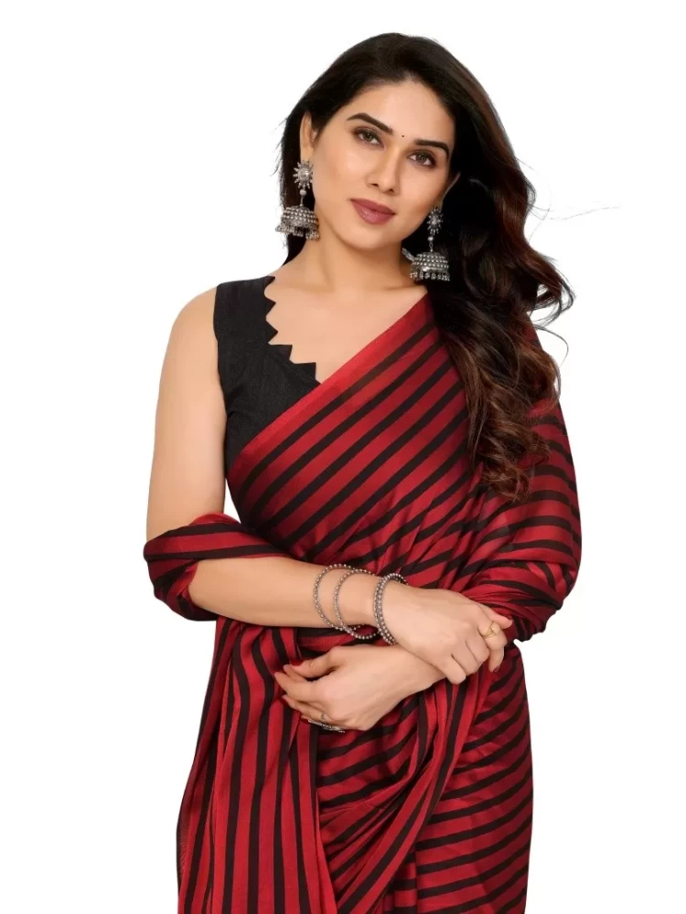 Crafted from high-quality fabric, this saree offers both comfort and durability. The vivid red and black hues create a dramatic contrast, perfect for festive celebrations, parties, and formal gatherings. The saree’s elegant design is versatile enough to suit various occasions, ensuring you always look your best.