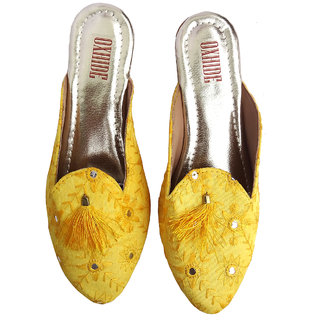 oxhide party wear yellow mules