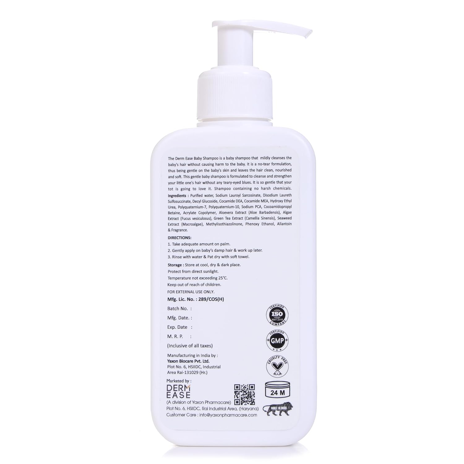 Dermease Baby Shampoo with Aloe Vera for Gentle Care cleanses your baby s hair softly without irritation It s made with a no tear formula to keep bath time comfortable and safe This gentle shampoo has Algae Extract Green Tea Extract Seaweed Allantoin and Aloe Vera to nourish hydrate soothe scalp and support soft healthy hair and scalp comfort