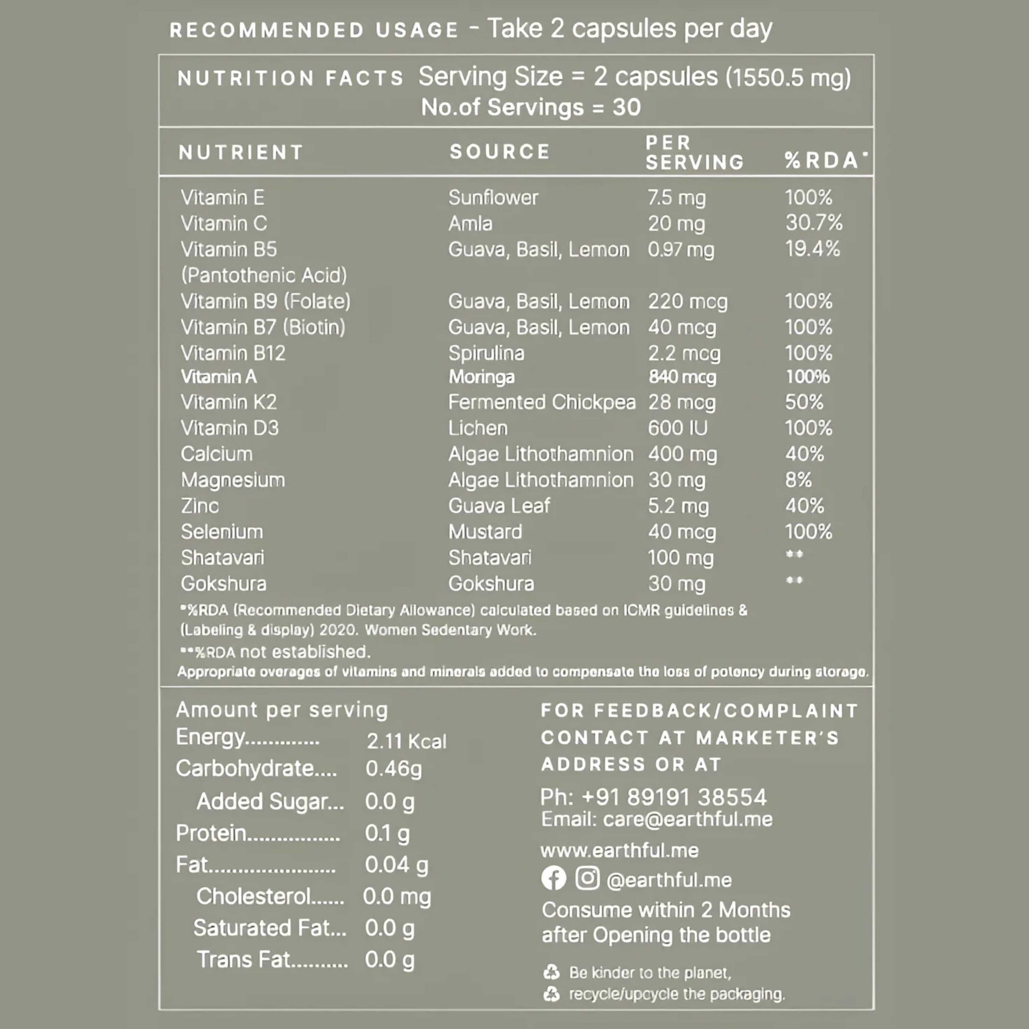 Earthful’s Multivitamin Women 40+ is a plant-based formula designed to support women’s health as they age. Packed with essential vitamins and minerals from natural sources, it helps maintain energy, bone strength, hormonal balance, and skin vitality. Free from synthetic additives, this clean, nutrient-rich supplement bridges daily nutrition gaps for overall well-being.