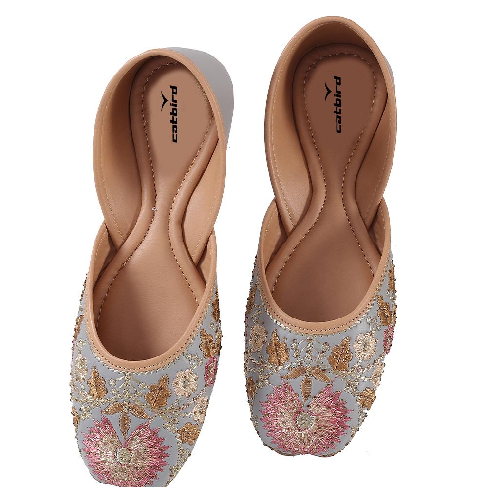 Catbird Women’s Ethnic Jutis – Tradition Meets Modern Comfort Embrace the perfect blend of tradition and comfort with Catbird Women’s Ethnic Jutis. Handcrafted with care, these beautiful jutis are made from high-quality faux leather, making them cruelty-free and durable. The intricate handmade embroidery features stunning floral motifs in vibrant colors like gold, orange, and pink, adding a touch of elegance to your ethnic wardrobe. These designs celebrate cultural heritage with a modern twist, making them perfect for festive occasions, weddings, or casual ethnic wear. The non-slip TPR sole ensures maximum grip and durability, allowing you to walk with confidence, whether indoors or outdoors. Designed to be lightweight and flexible, these juttis provide ultimate comfort, letting you enjoy long hours of wear without discomfort.