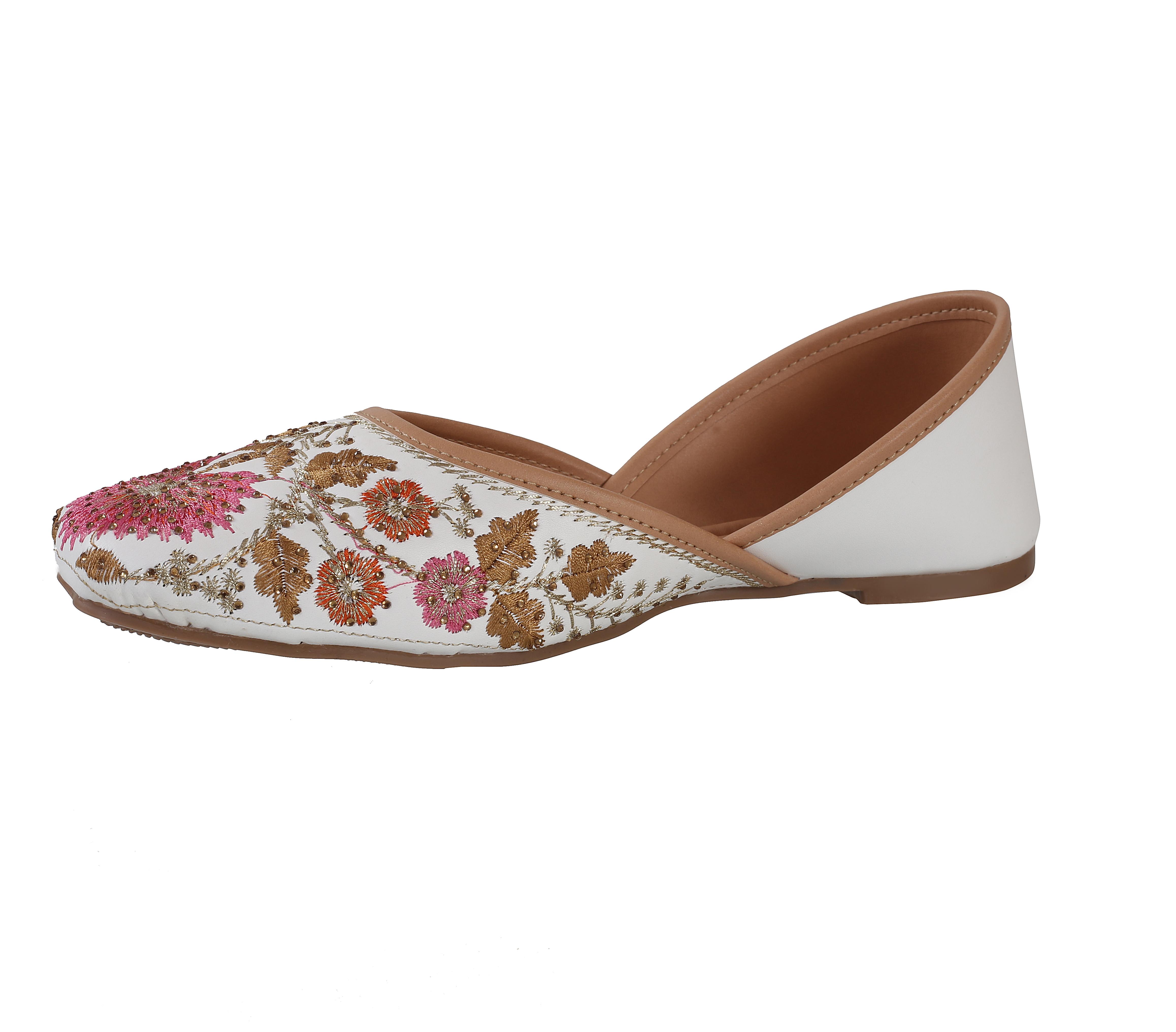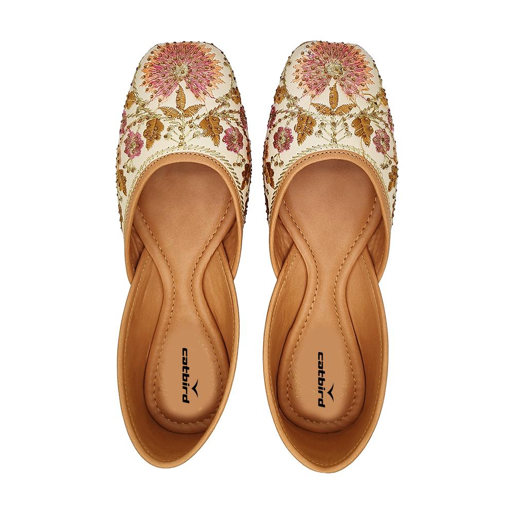 Catbird Women’s Ethnic Jutis – Tradition Meets Modern Comfort Embrace the perfect blend of tradition and comfort with Catbird Women’s Ethnic Jutis. Handcrafted with care, these beautiful jutis are made from high-quality faux leather, making them cruelty-free and durable. The intricate handmade embroidery features stunning floral motifs in vibrant colors like gold, orange, and pink, adding a touch of elegance to your ethnic wardrobe. These designs celebrate cultural heritage with a modern twist, making them perfect for festive occasions, weddings, or casual ethnic wear. The non-slip TPR sole ensures maximum grip and durability, allowing you to walk with confidence, whether indoors or outdoors. Designed to be lightweight and flexible, these juttis provide ultimate comfort, letting you enjoy long hours of wear without discomfort.