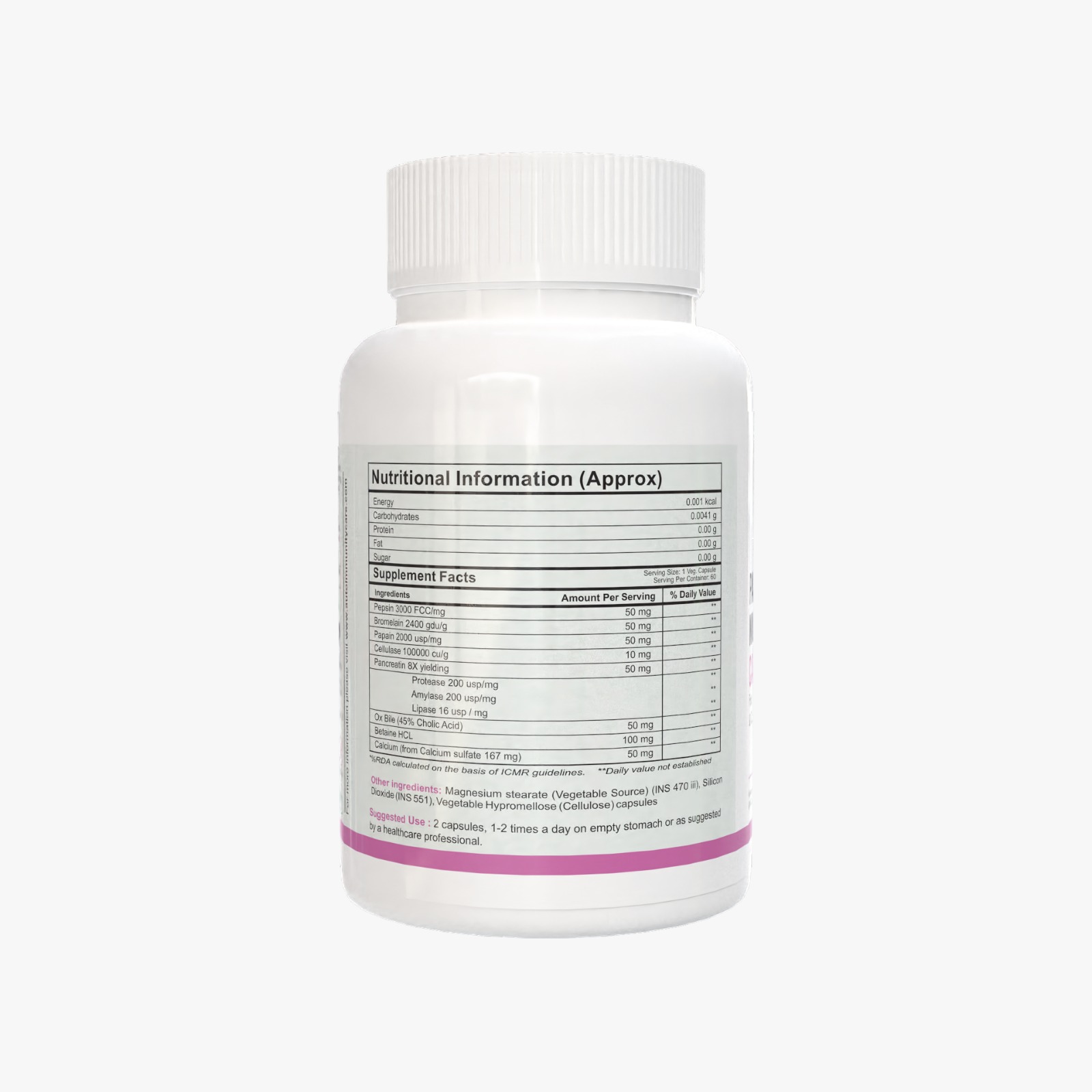 FM Nutrition Digestive Enzymes is a powerful blend of plant based and pancreatic enzymes that helps your body with digestion This product supports your liver and pancreas to work well so you can break down all the fats proteins and carbs in your food By helping your body with these important tasks this supplement helps to relieve stomach discomfort and ensures you get all the good nutrients from your food
