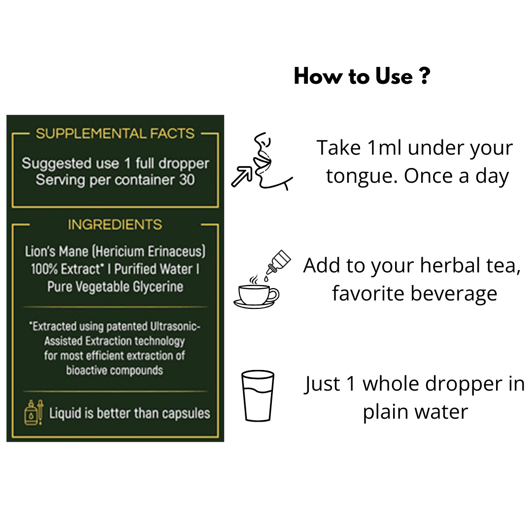 Sharper Mind Better Memory Lion s Mane mushroom liquid boosts brain power memory focus naturally Benefits Think faster clearer Better memory recall Protects brain health Supports nerve function High strength liquid extract works faster than pills Safe for daily use Lab tested Perfect for students professionals seniors Add drops to water tea or juice Boost your brain today