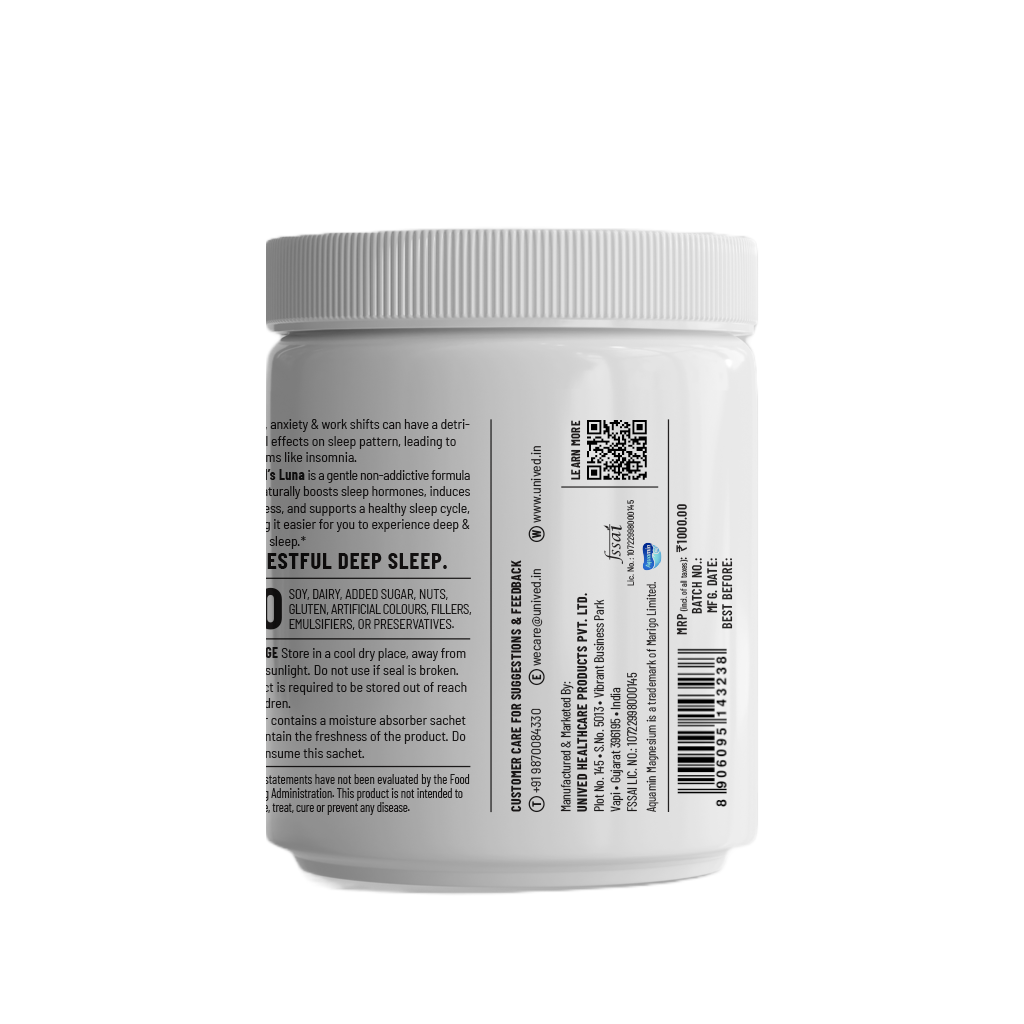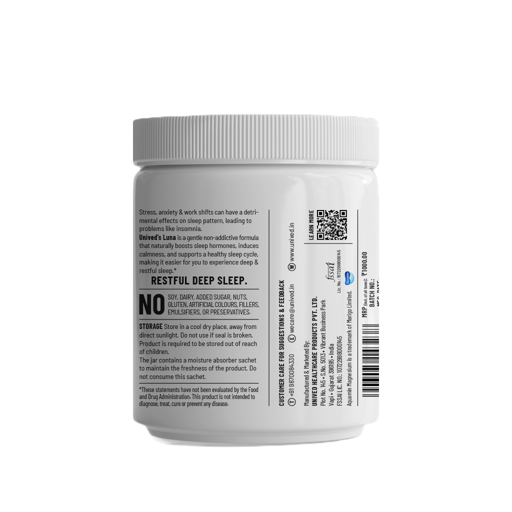 Unived Good Night 30 Servings is a calming sleep drink designed to support deep rest and relaxation It helps the body follow its natural sleep cycle reduces stress hormones and promotes better sleep quality With natural ingredients it helps you feel calm fall asleep faster and wake up fresh without daytime sleepiness Safe and easy to drink daily it supports long term sleep health