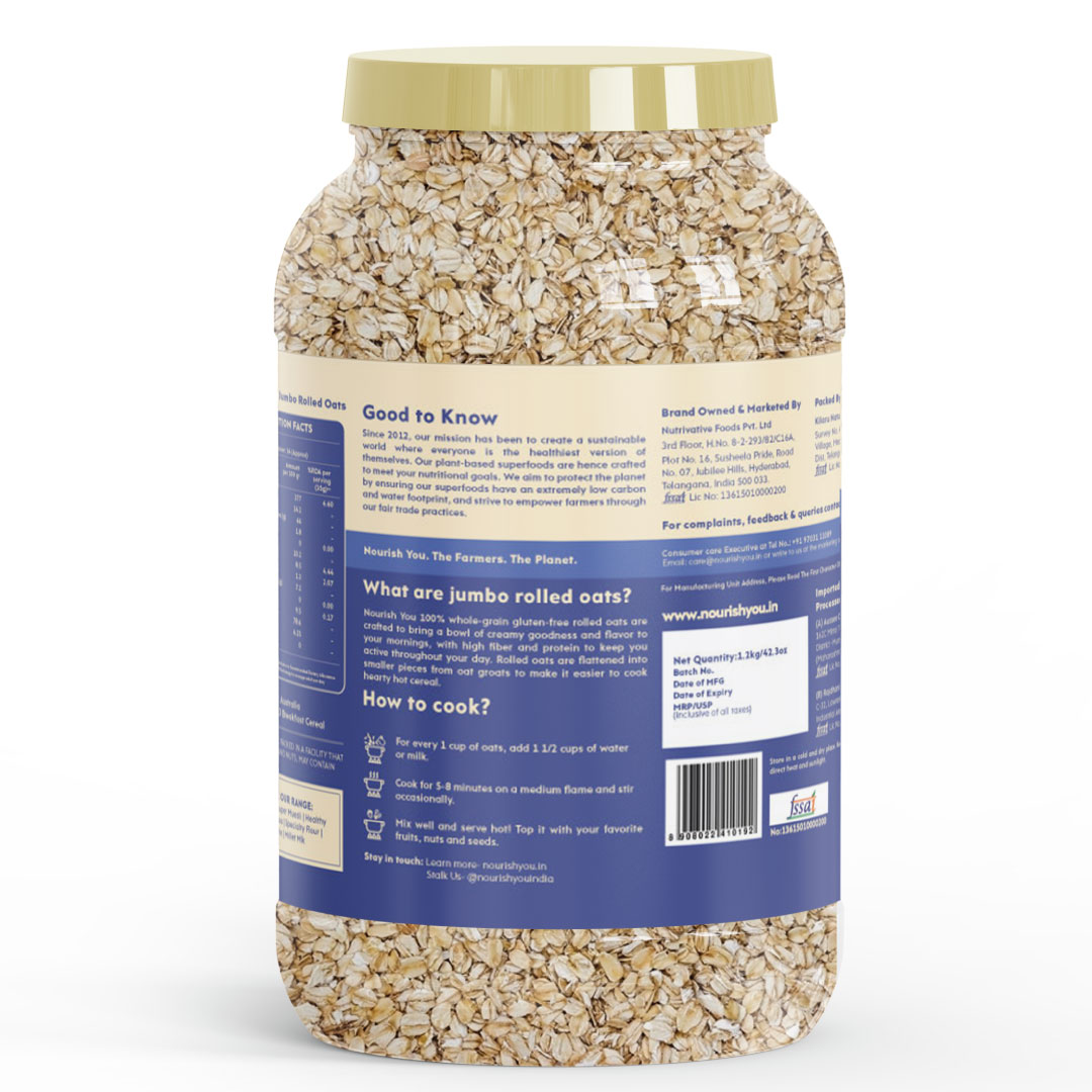 nourish you Jumbo Rolled Oats are 100 wholegrain gluten free and rich in fiber and protein They support heart health digestion and provide sustained energy Perfect for creamy oatmeal smoothies or baking