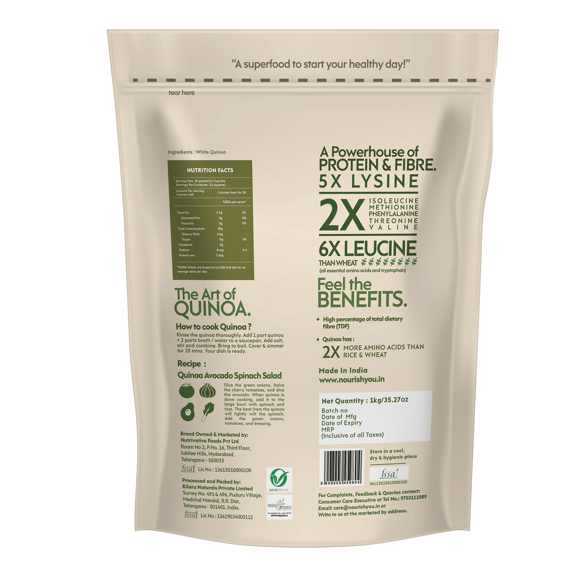 nourish you Organic White Quinoa is a complete protein source rich in fiber iron and antioxidants Naturally gluten free it supports heart health digestion and sustained energy Ideal as a nutritious substitute for rice or other grains