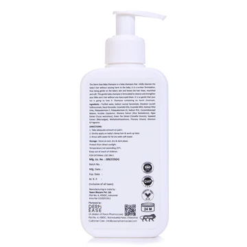 Dermease Baby Shampoo with Aloe Vera for Gentle Care cleanses your baby s hair softly without irritation It s made with a no tear formula to keep bath time comfortable and safe This gentle shampoo has Algae Extract Green Tea Extract Seaweed Allantoin and Aloe Vera to nourish hydrate soothe scalp and support soft healthy hair and scalp comfort