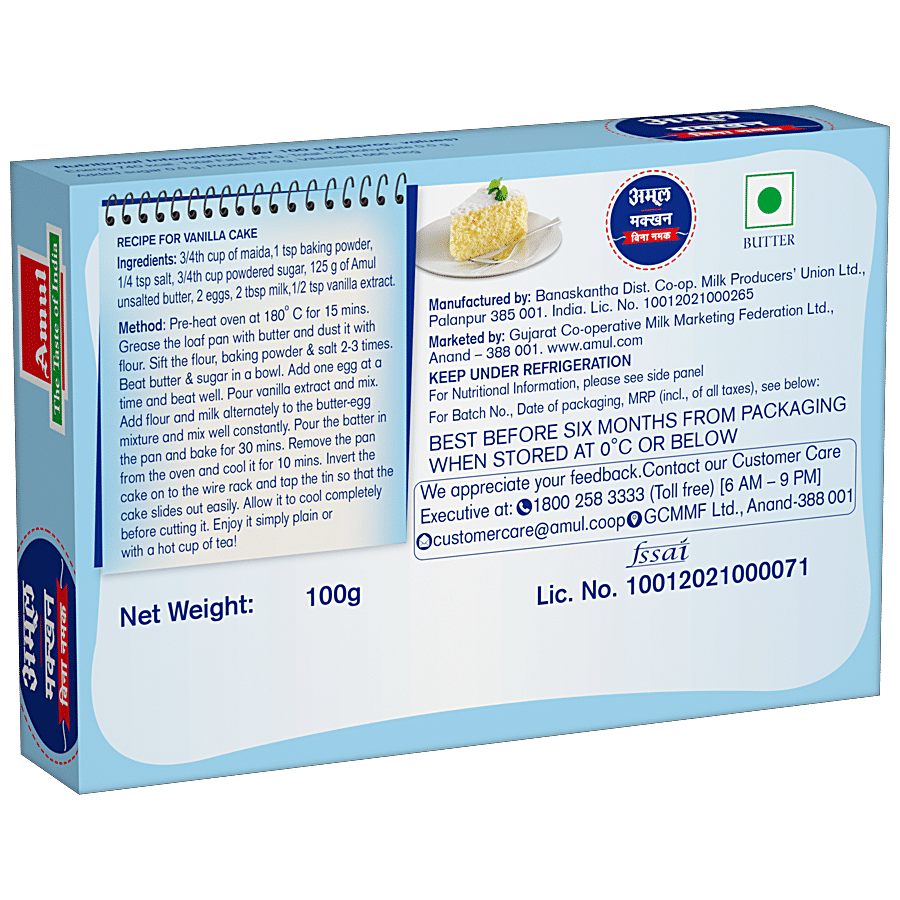 Amul Butter, Unsalted, 100 G Carton
