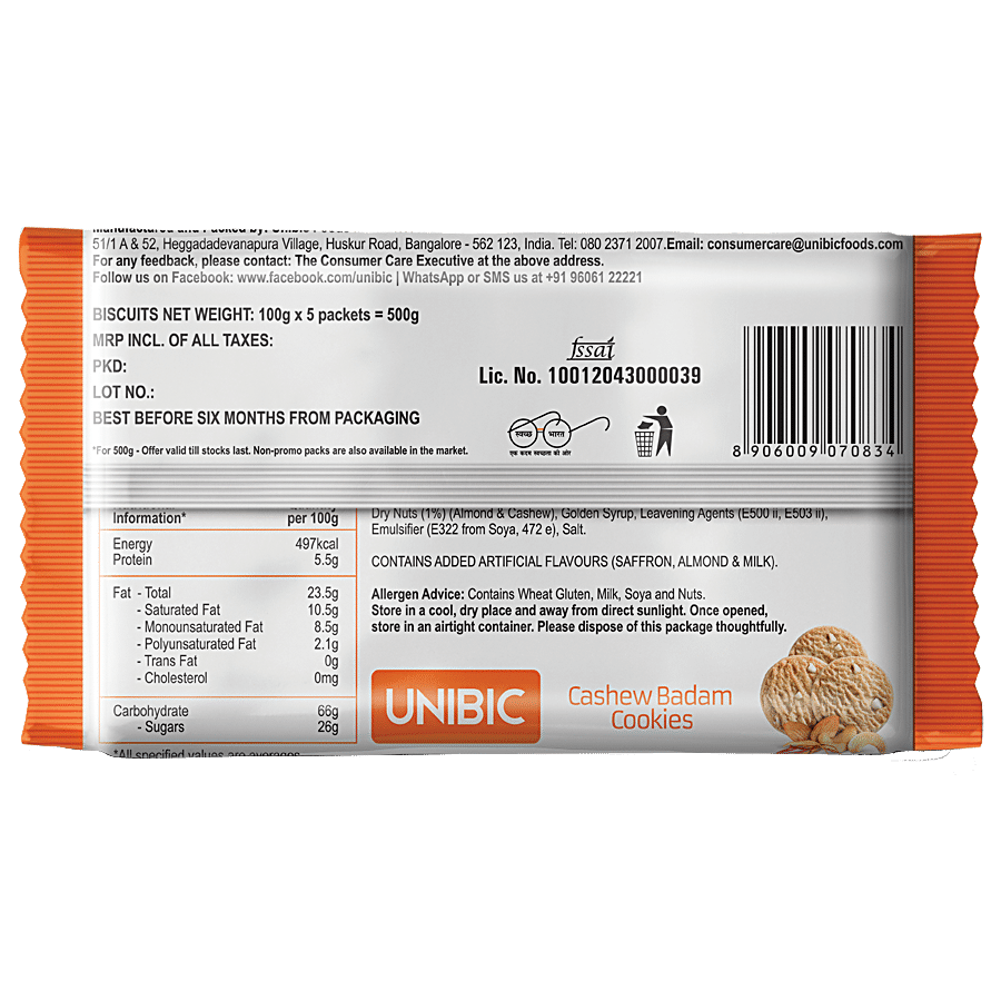 UNIBIC Cashew Badam Cookies, 100 g (Pack of 5)