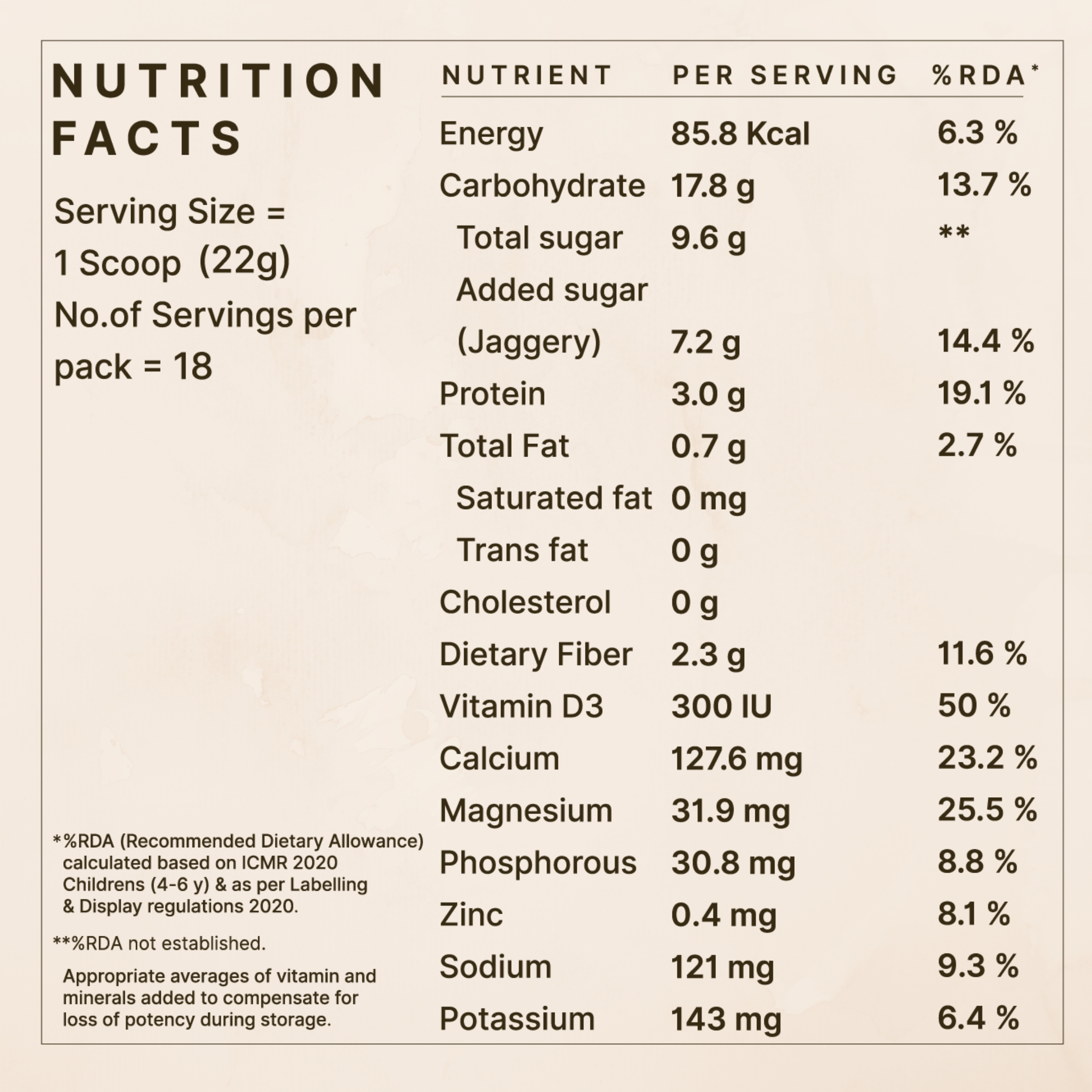 Earthful's Kids Millet Mix is a 100% plant-based nutritional supplement crafted from whole grains like ragi, jowar, and barley malt. Enhanced with natural cocoa, it provides essential nutrients including calcium, vitamin D3, and pea protein. Naturally sweetened with jaggery and monk fruit, this mix offers a delicious and healthy alternative to traditional milk additives, supporting your child's growth and energy needs.
