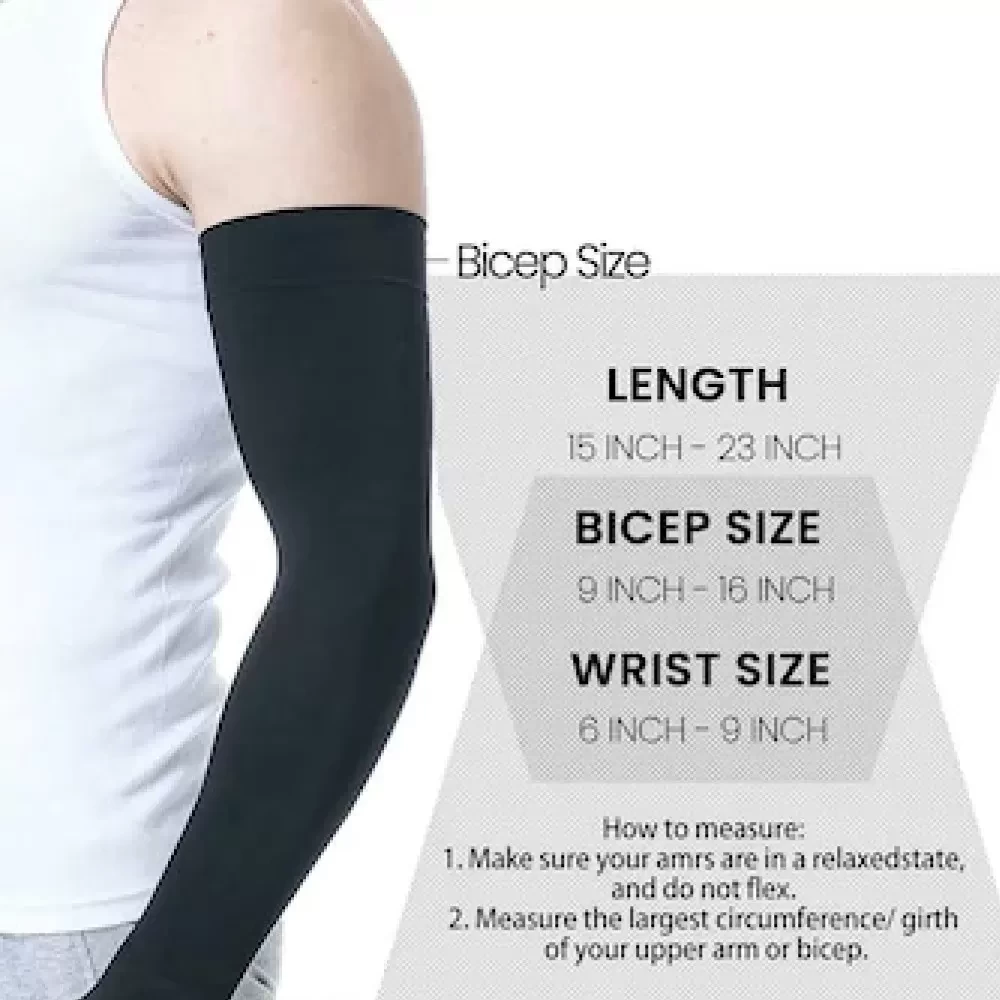 Care instructions: machine wash ultimate uv protection protect for your arms high performance fabric: fast sweat kick-away and fast dry breathable material: professional grade high performance material blended with spandex gives more stretchability engineered to relieve arm pain, elbow pain, swelling, soreness and discomforts compression technology: athletically designed arm compression sleeves to protect your arms, relieve lymphedema pains and provides superior support to promote relief and rapid muscular recovery