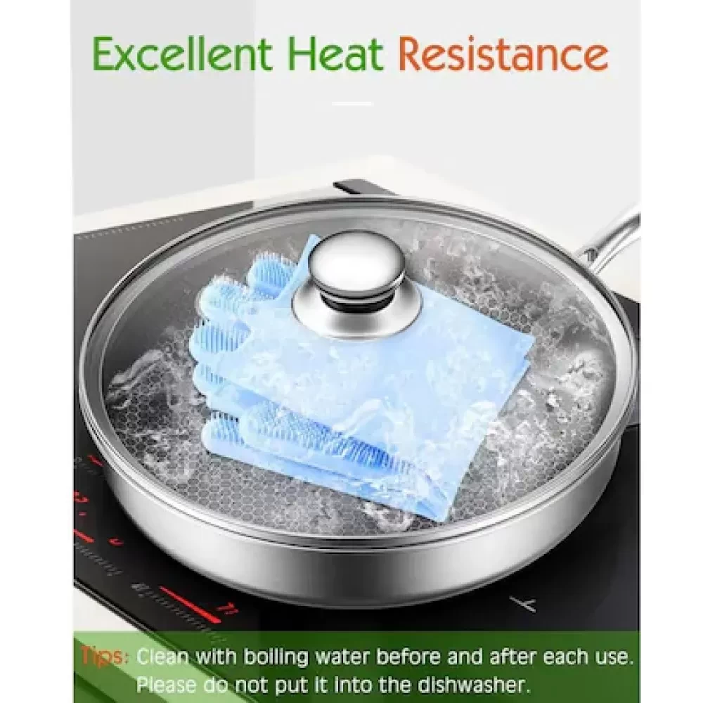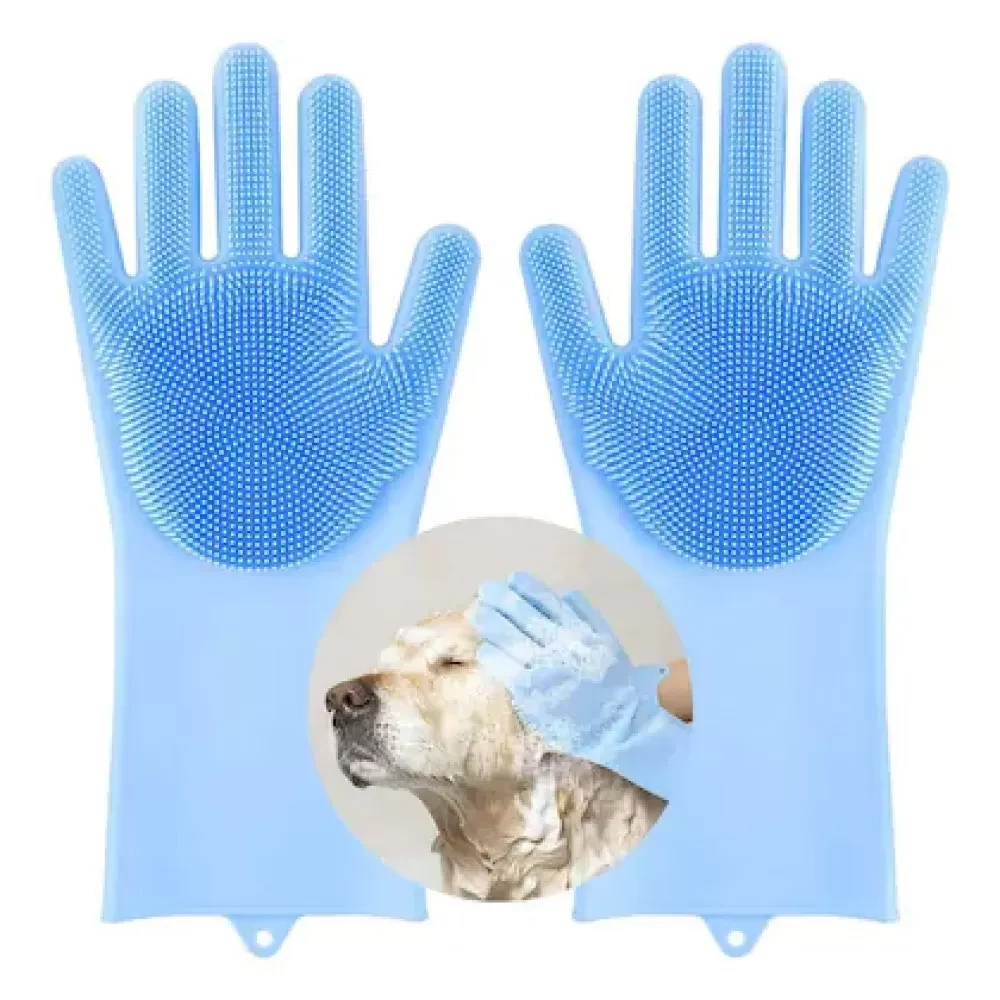 Multipurpose Silicone Heat Resistant Blue Soft Brush Gloves