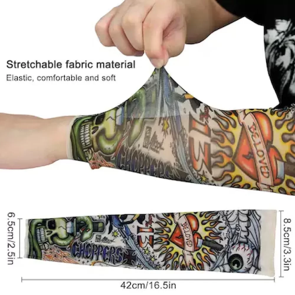 Fashionable Tattoo Print Design: Featuring a variety of stylish tattoo prints, these arm sleeves add a touch of edginess to your outfit. The vibrant and realistic tattoo designs give the illusion of real tattoos, allowing you to showcase your unique style without the permanence of actual ink.