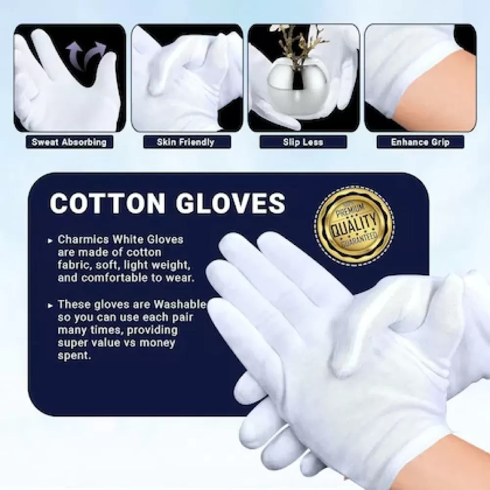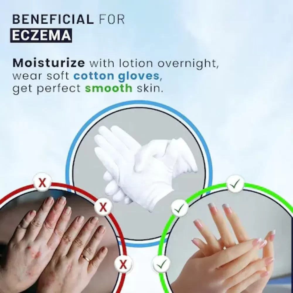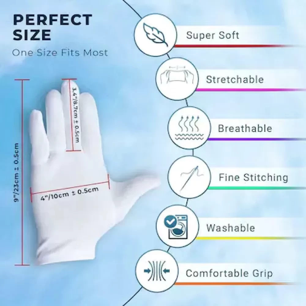 The hand moisturizing gloves are 9"/23cm in length, stretchable to fit for most men and women, easy to put on and take off. the charmics cotton gloves for eczema are breathable and comfortable, keep your favorite cream or lotion on your hands and keep them moisturizing overnight. white gloves cotton for dry hands fit well for almost all genders.