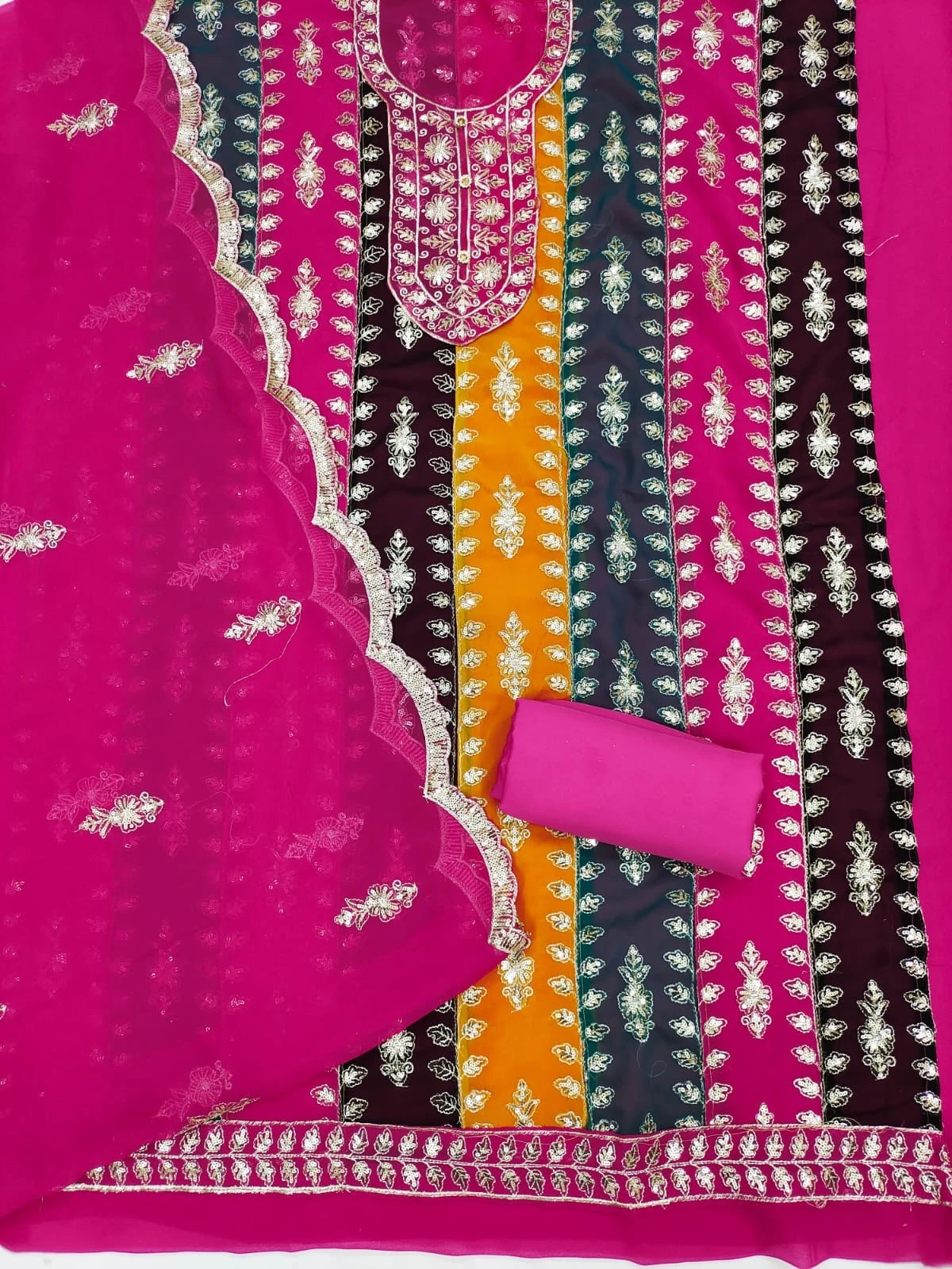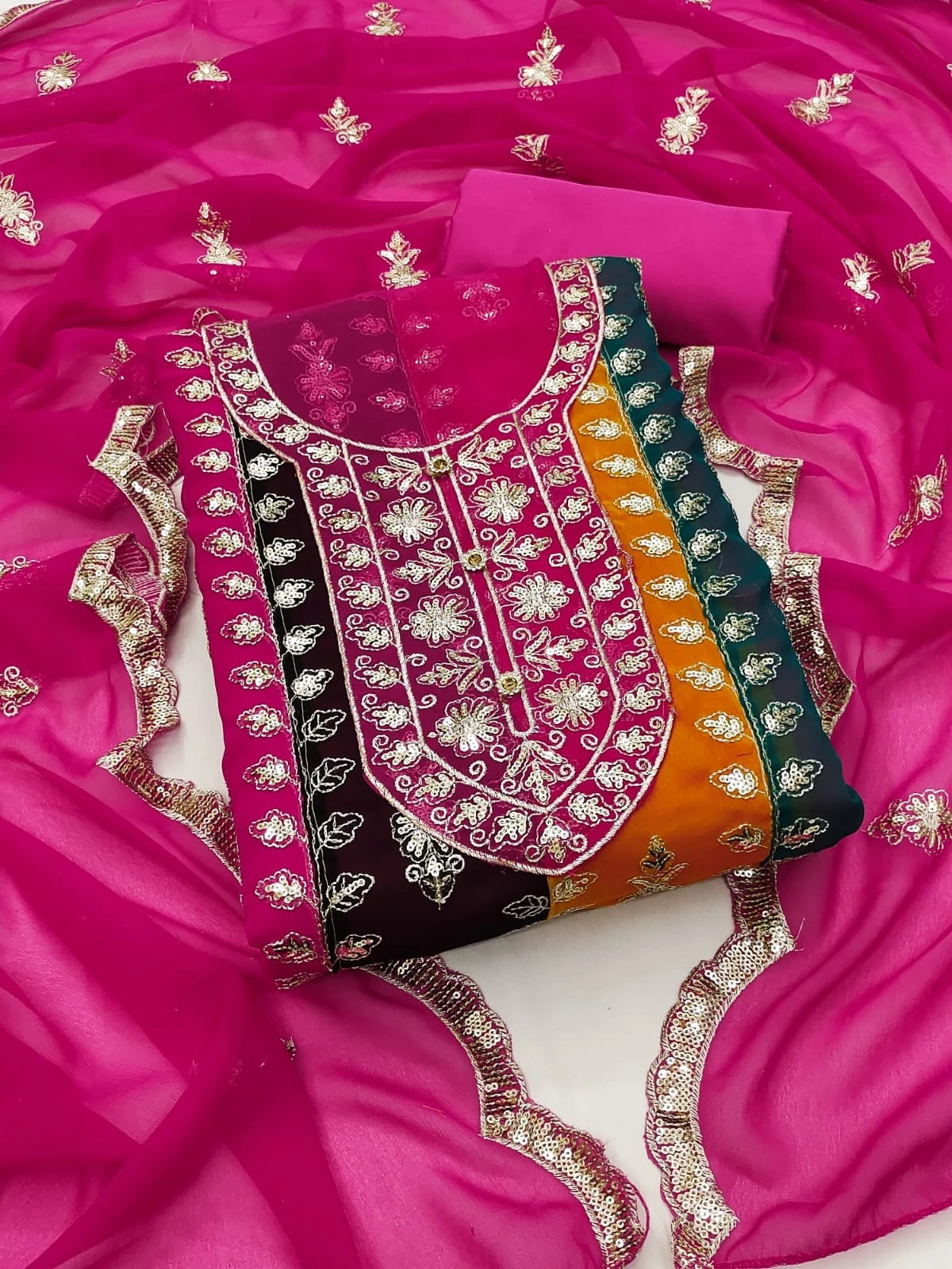 Top Fabric : GEORGETTE WITH EMBROIDERY AND SEQUENCE WORK(2.1 MTRS)