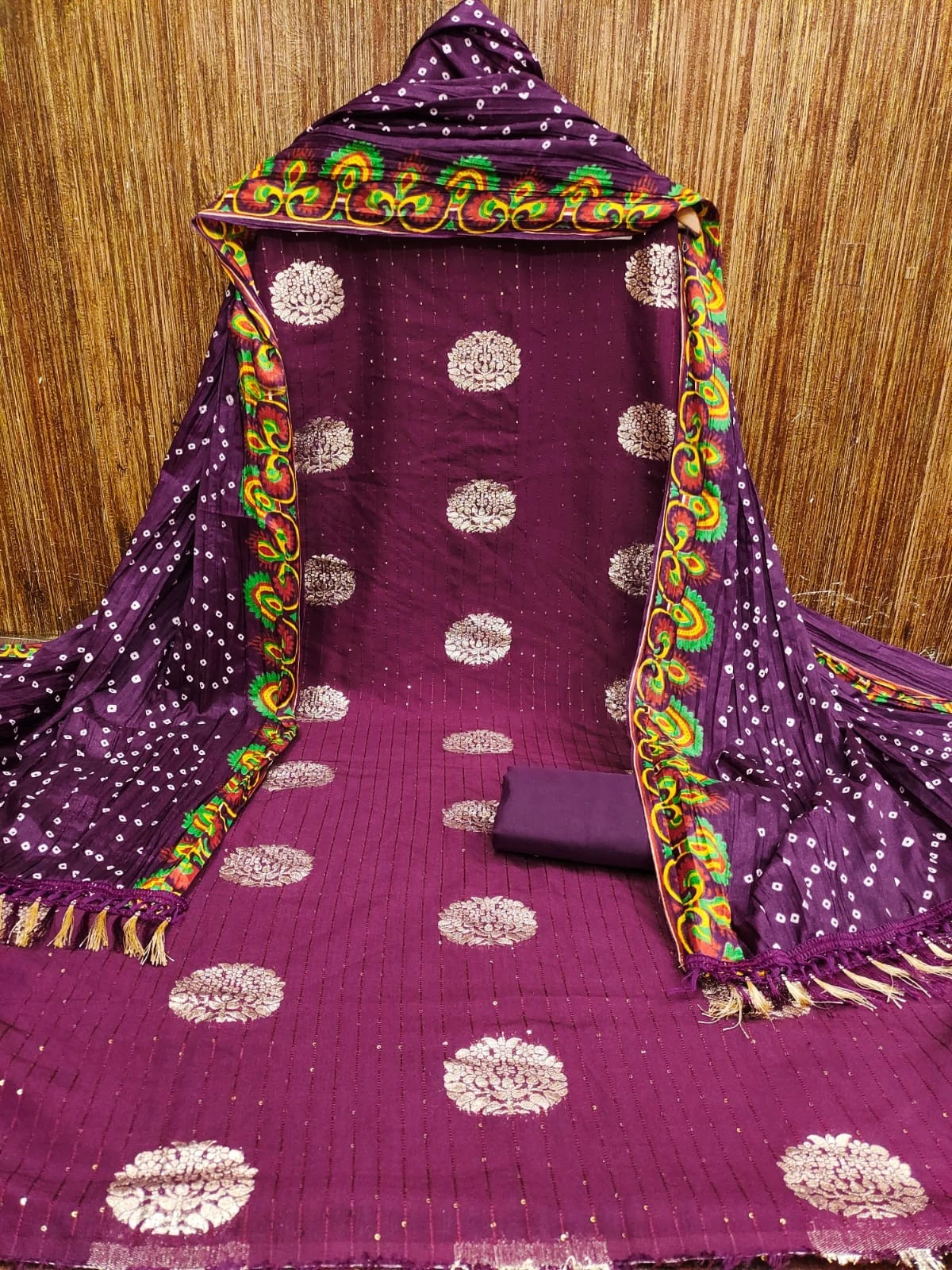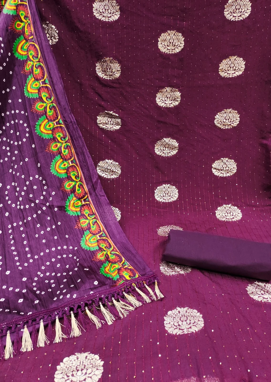 Introducing our exquisite Women Jacquard Silk Purple Dress Material, a blend of elegance and sophistication that will elevate your ethnic wardrobe to new heights. Crafted with precision and attention to detail, this ensemble exudes timeless charm and refined style.