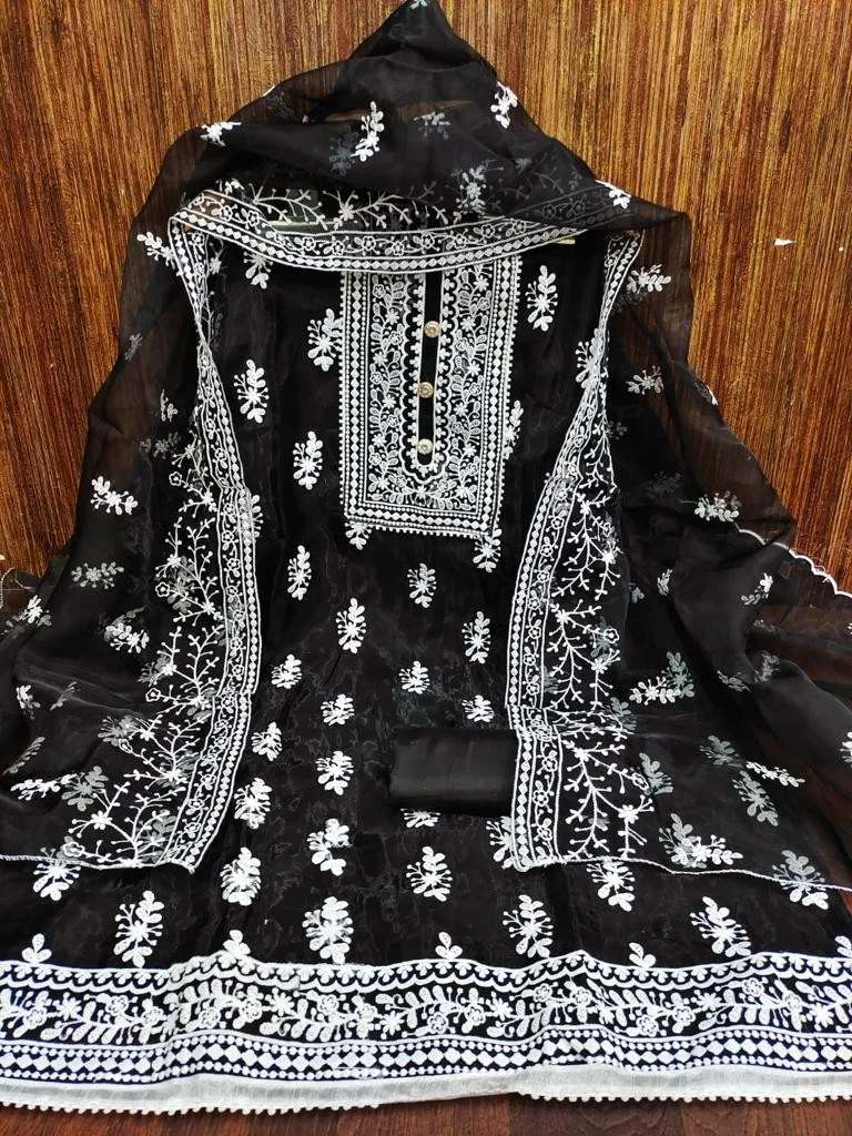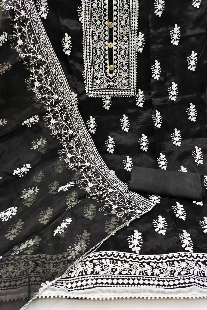 Whether you're attending a wedding, festive celebration, or special occasion, our Women's Organza with Embroidery Work Black Dress Material is sure to make you the center of attention.