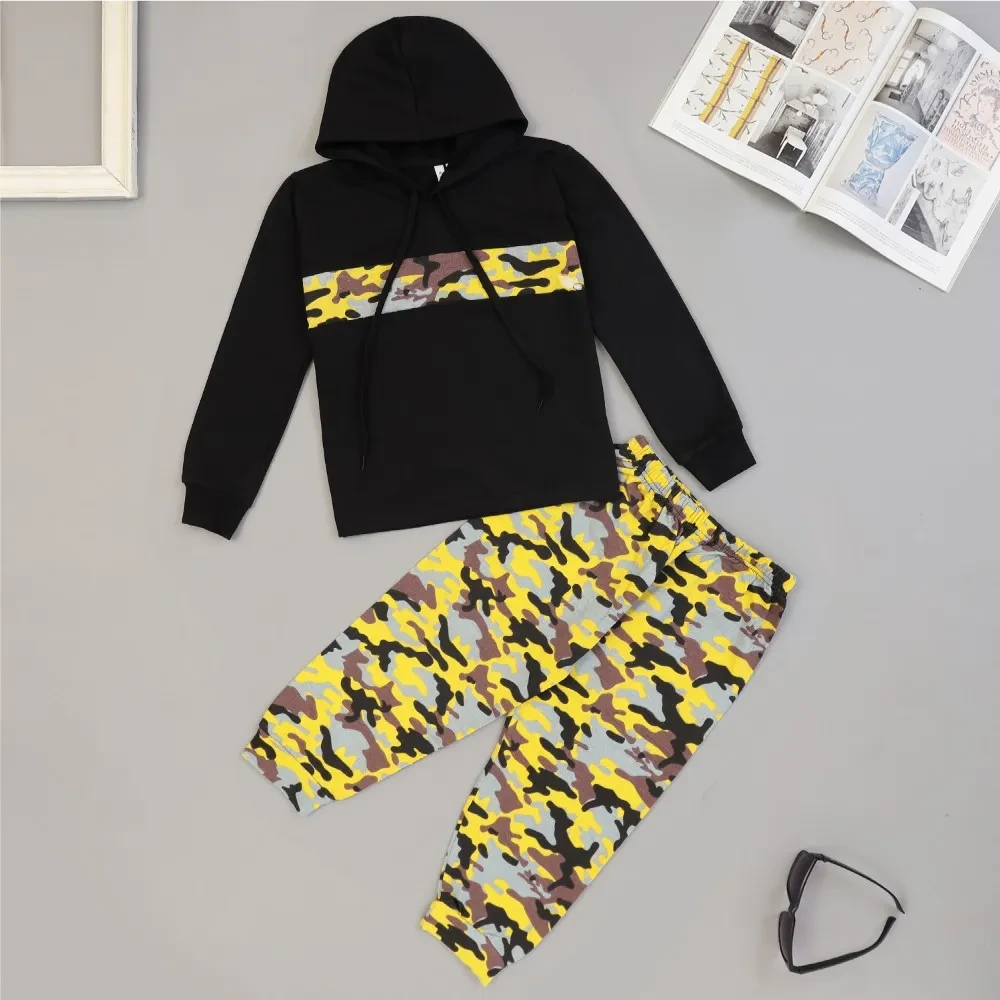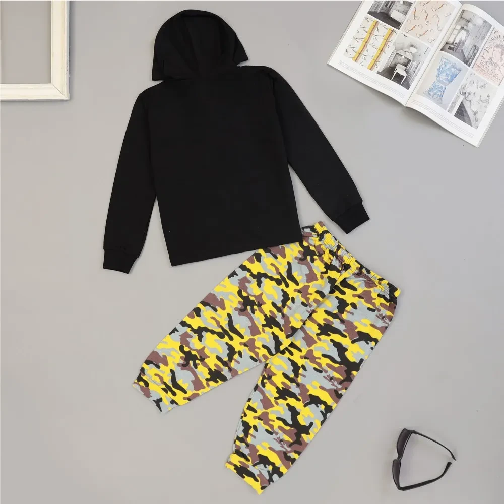 New Charming Hooded Sweatshirt with Yellow Printed Pant for Boys