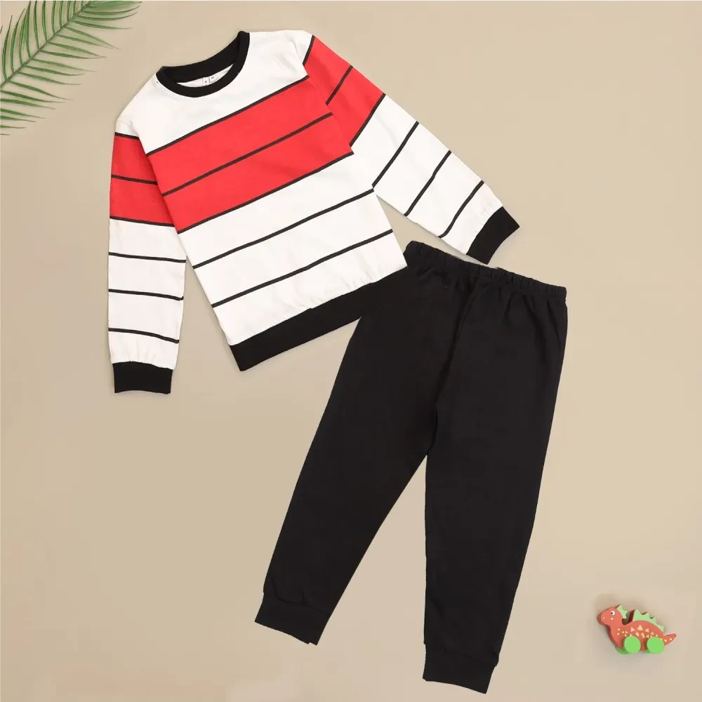Striped Red Tshirt and Black Pant Set For Boys