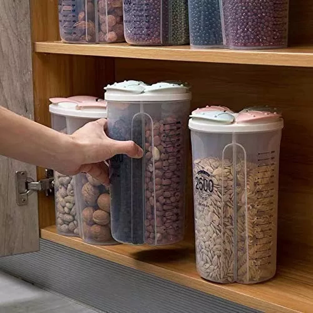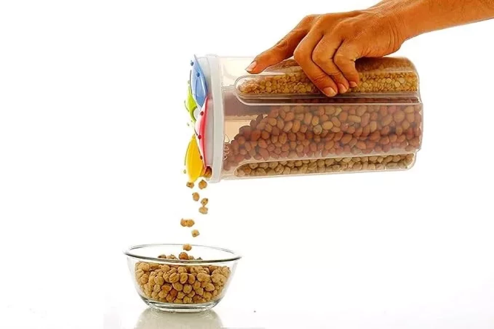 AMEEHA 2500 ml 4 Grid Cereal & Dry Food Storage Containers, Airtight Lid Suitable for Kitchen Cereal, Flour, Sugar, Coffee, Rice, Nuts, Snacks (Pack of 1)
