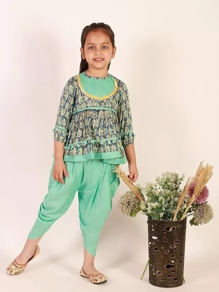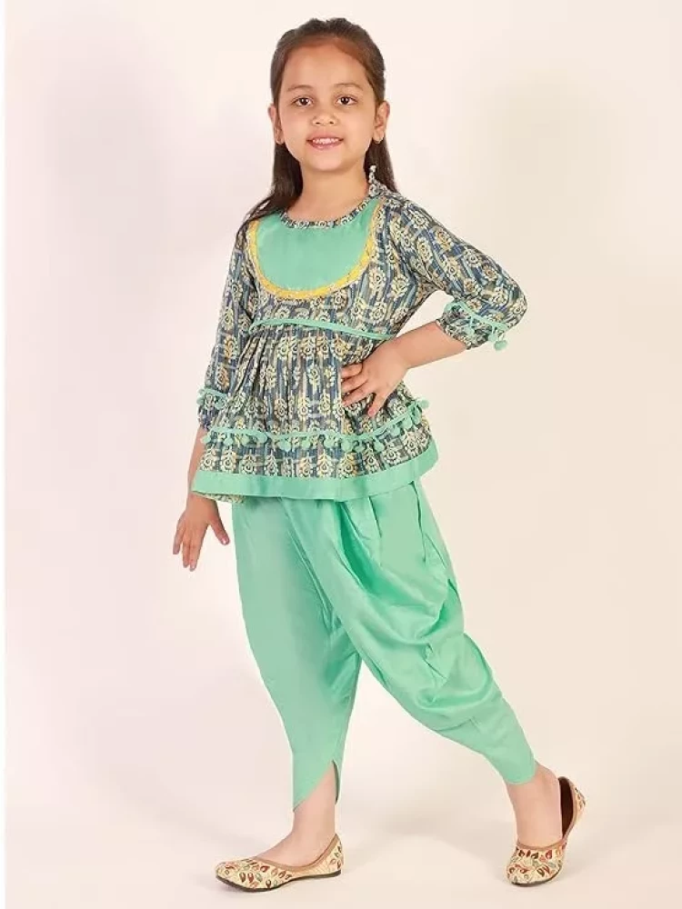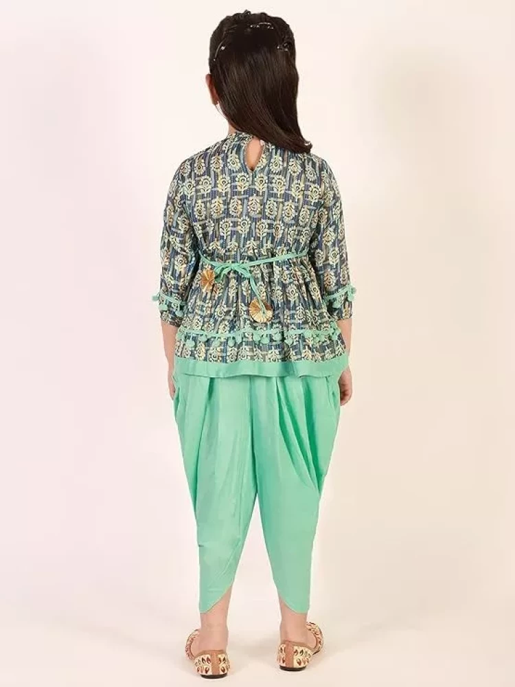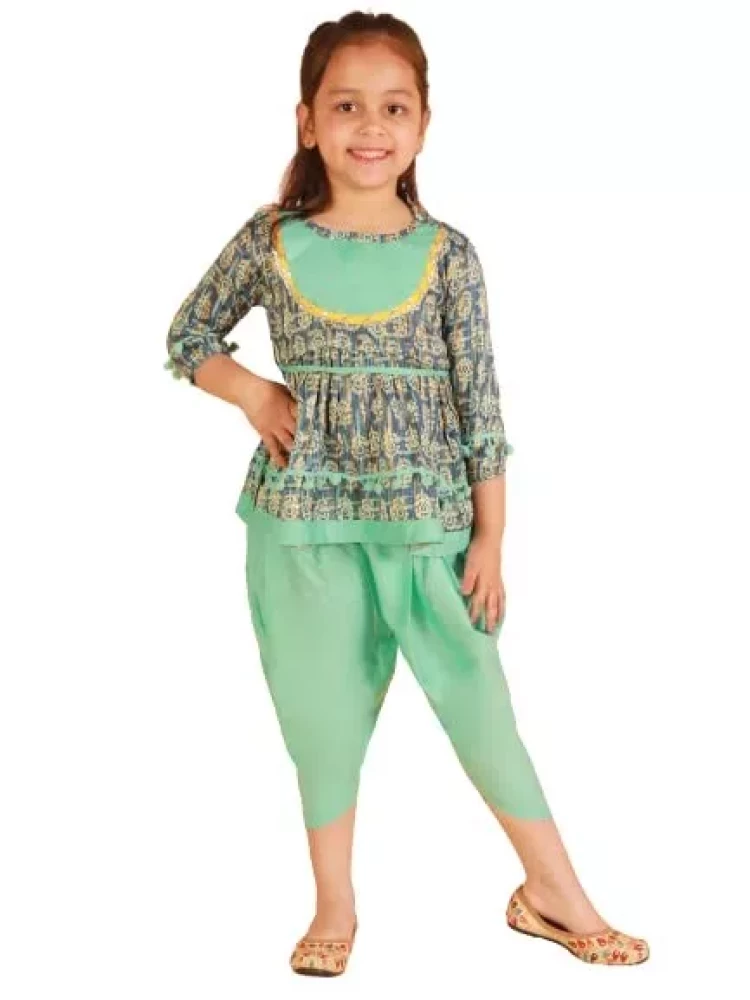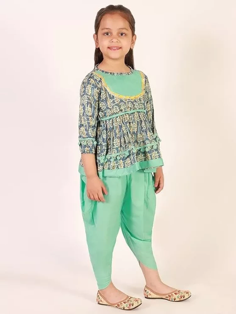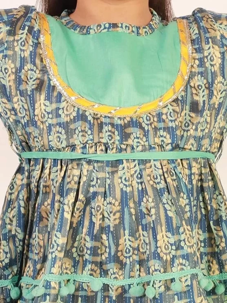 Ameeha Baby Girls Print Green Print Frock Kurti with Dhoti Style Salwar