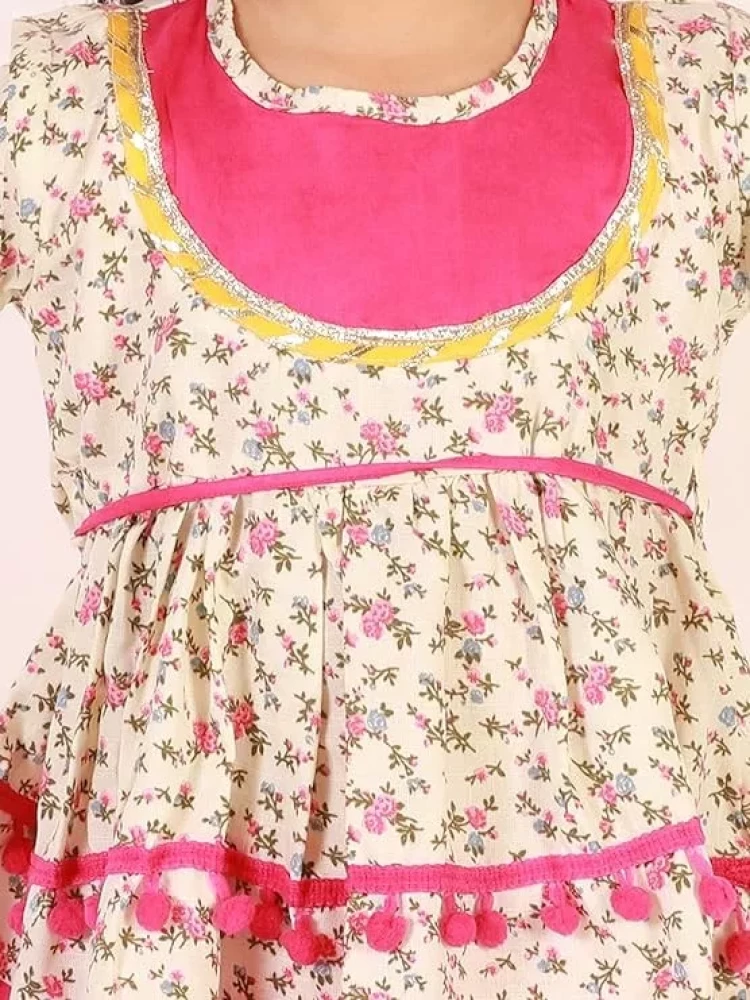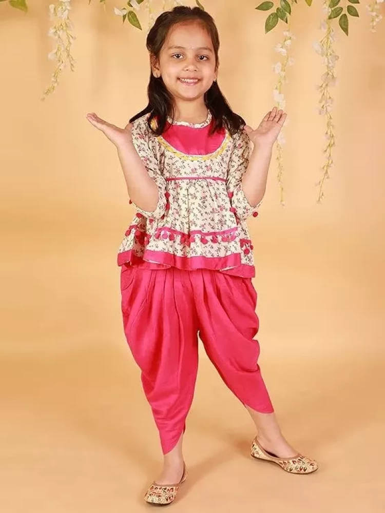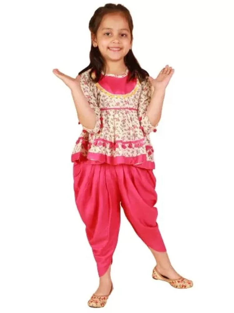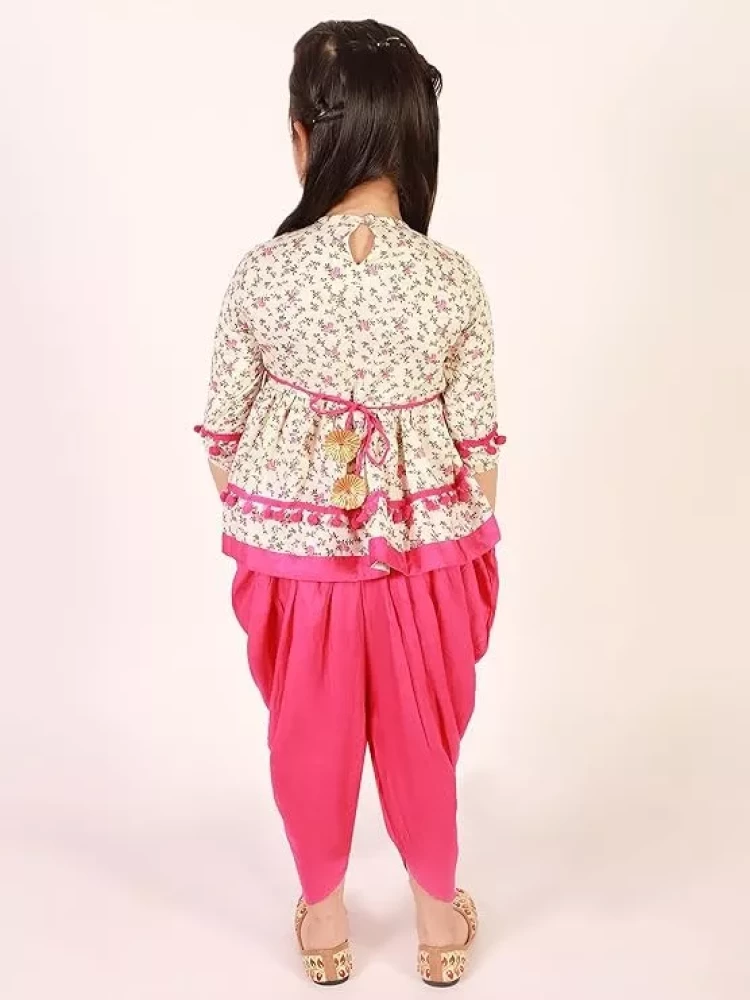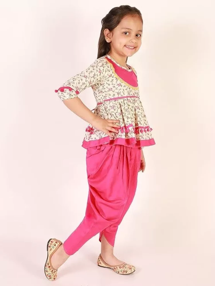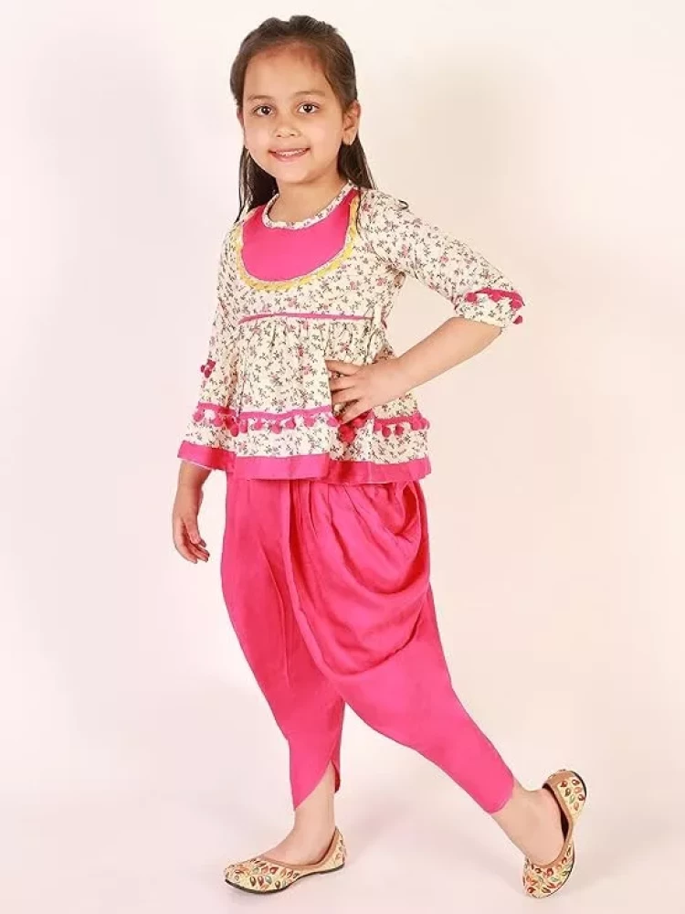 Ameeha Baby Girls Print Pink Frock Kurti with Dhoti Style Salwar
