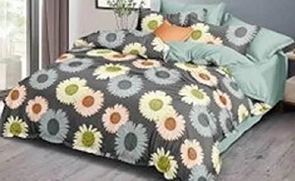 AMEEHA Bed Sheet Set with 2 Pillow in Unique designable Cotton Fabric Sunflower Grey