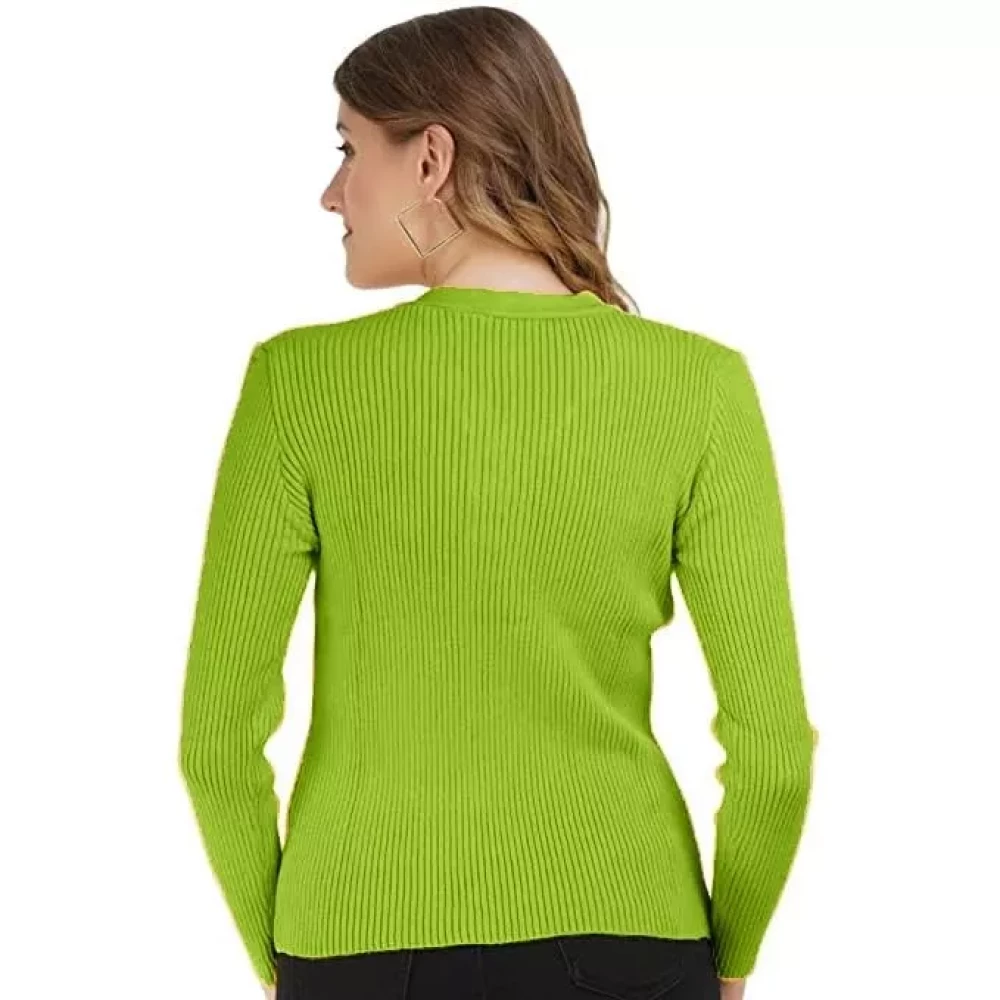 Ameeha Full Sleeve Pullover Sweater Knit Green Tops for Girls