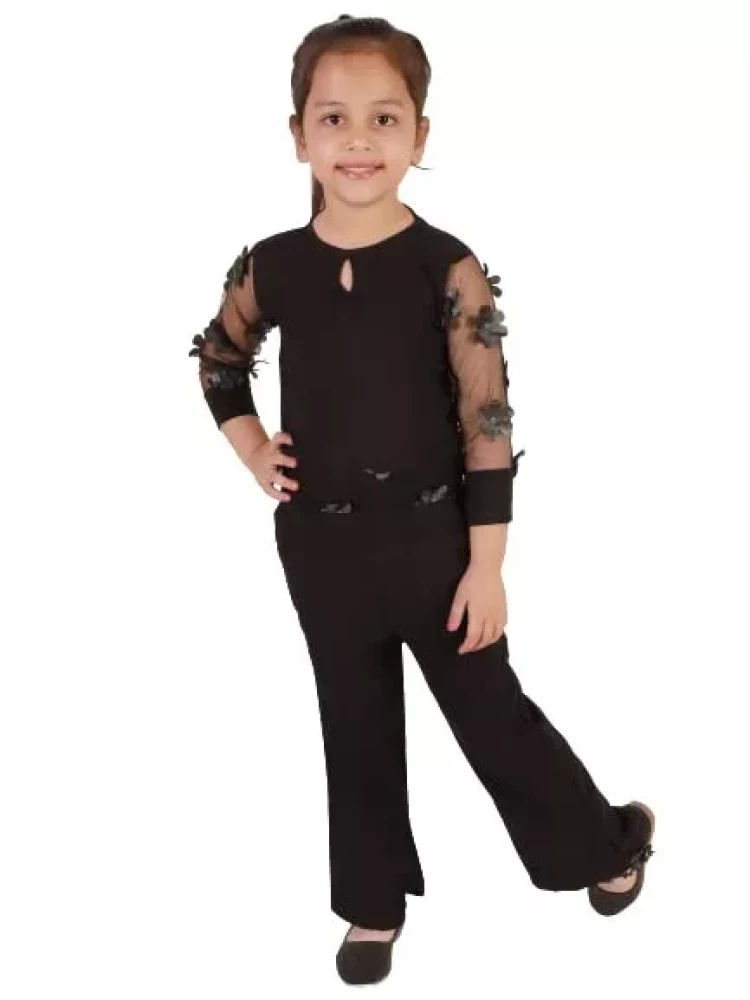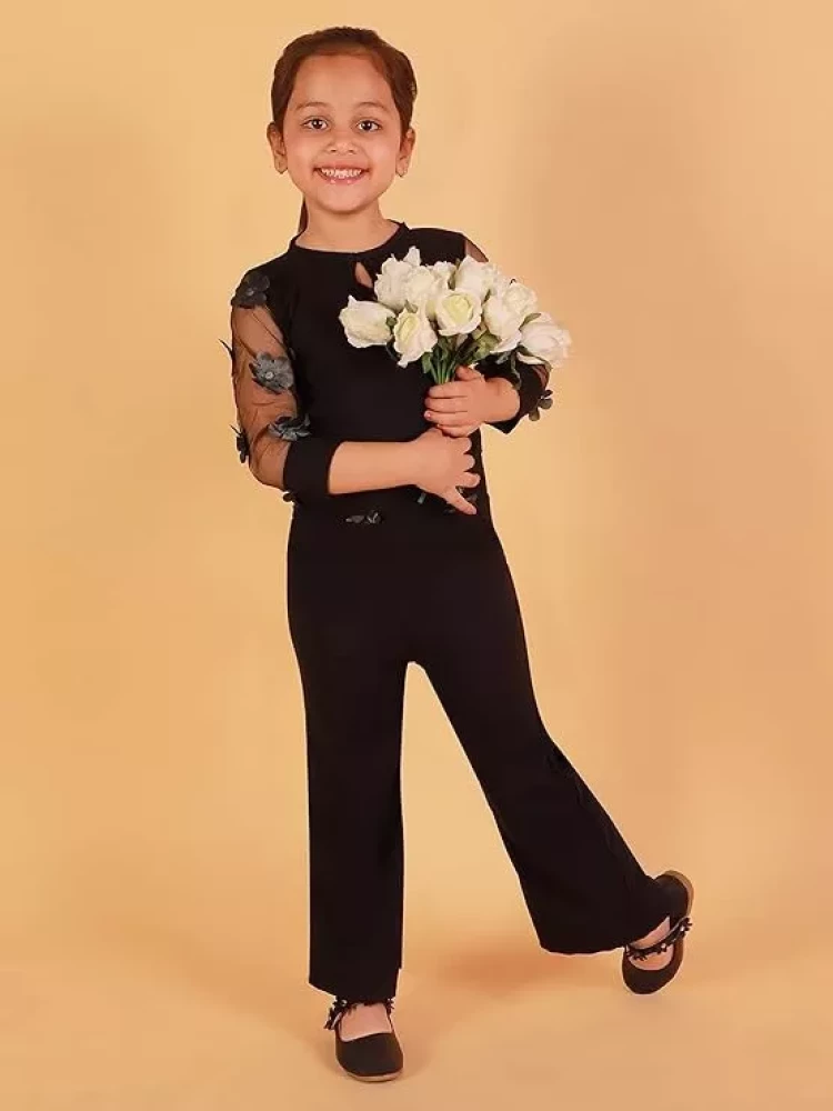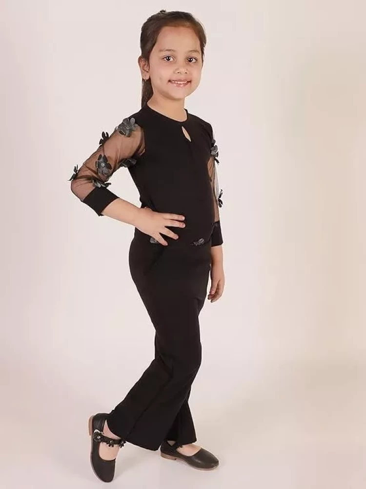 Ameeha Girls Long Black Jumpsuit Set