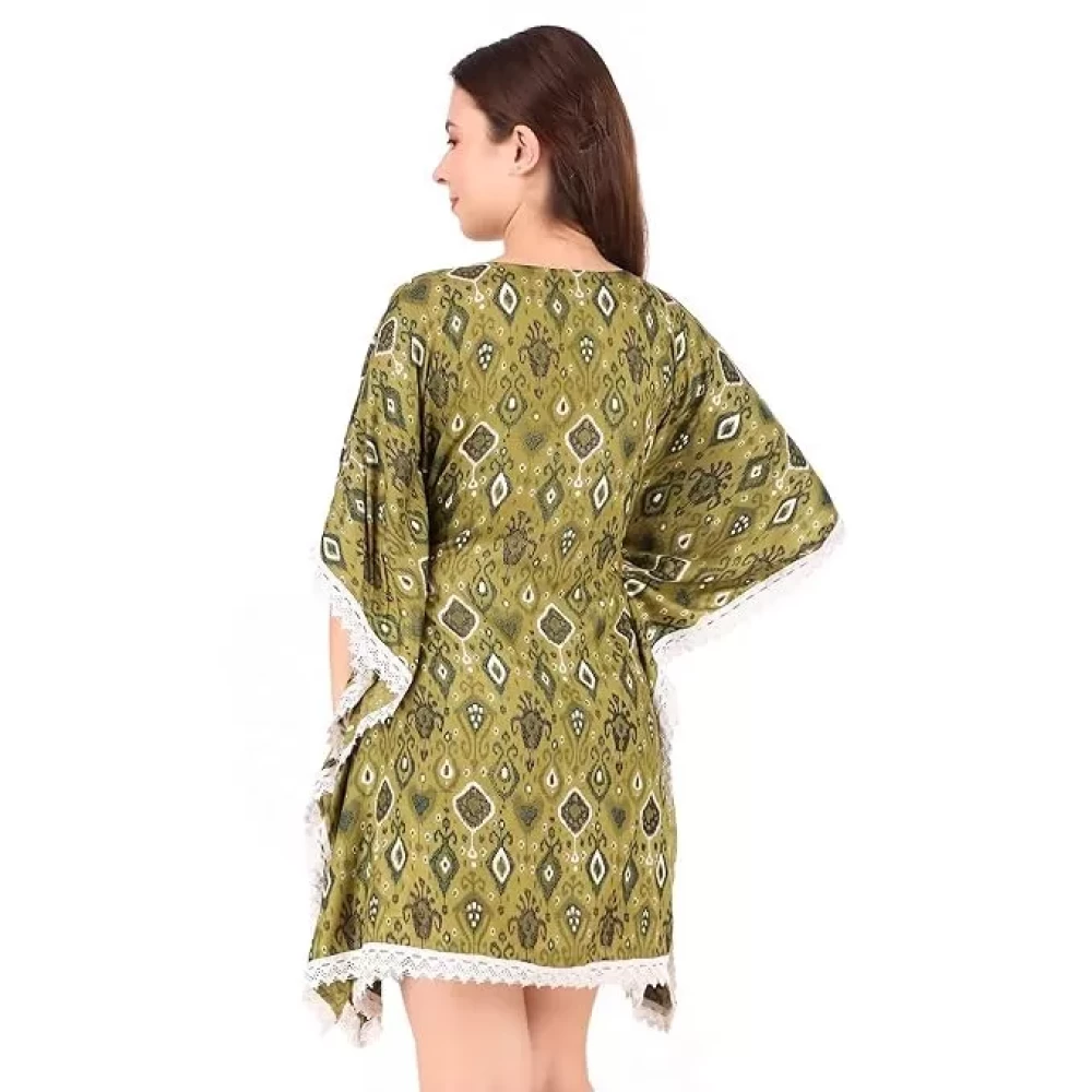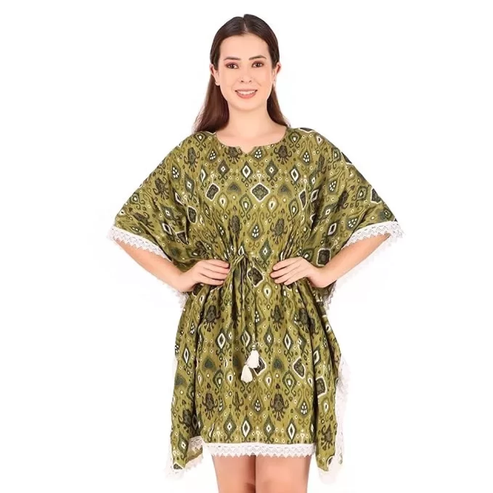 Ameeha Imported Printed Kaftan Green Dress for Ladies