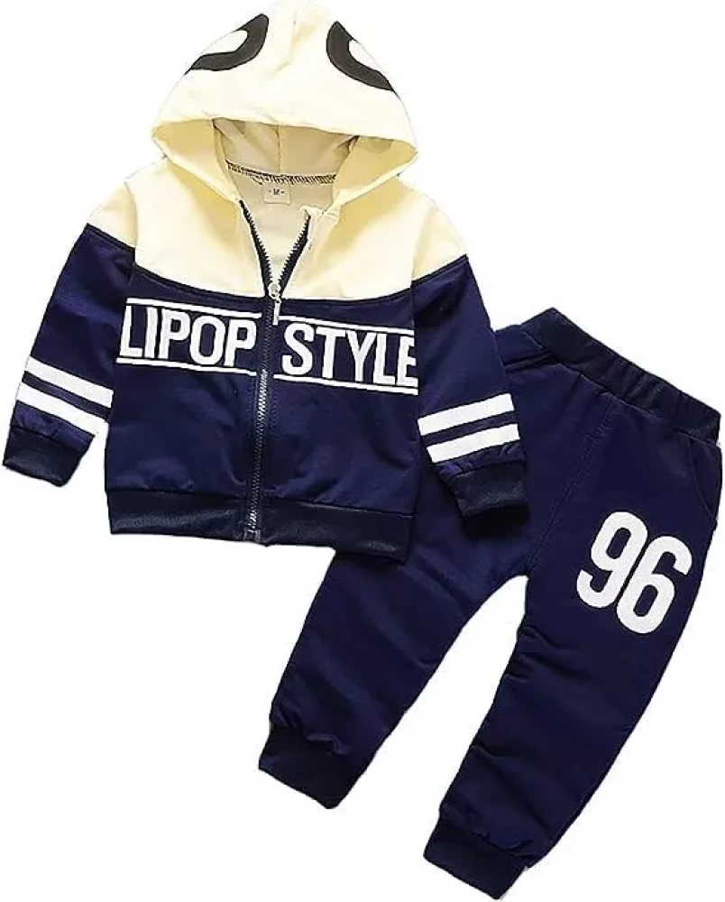 Ameeha Kids Blue Tracksuit Zip Up Hoodie Sweatshirts Jacket with Pants