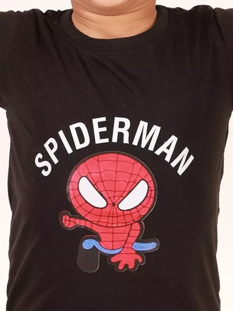 Ameeha Kids Cotton Half Sleeves Black T Shirt with Shorts for Baby Boy Girl