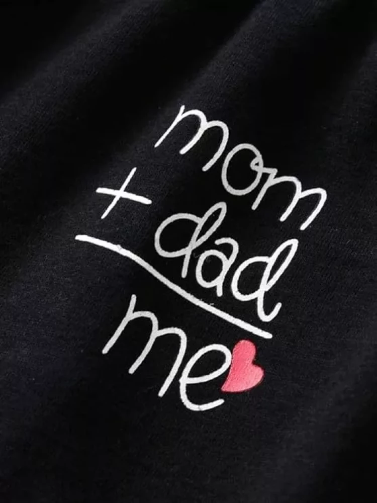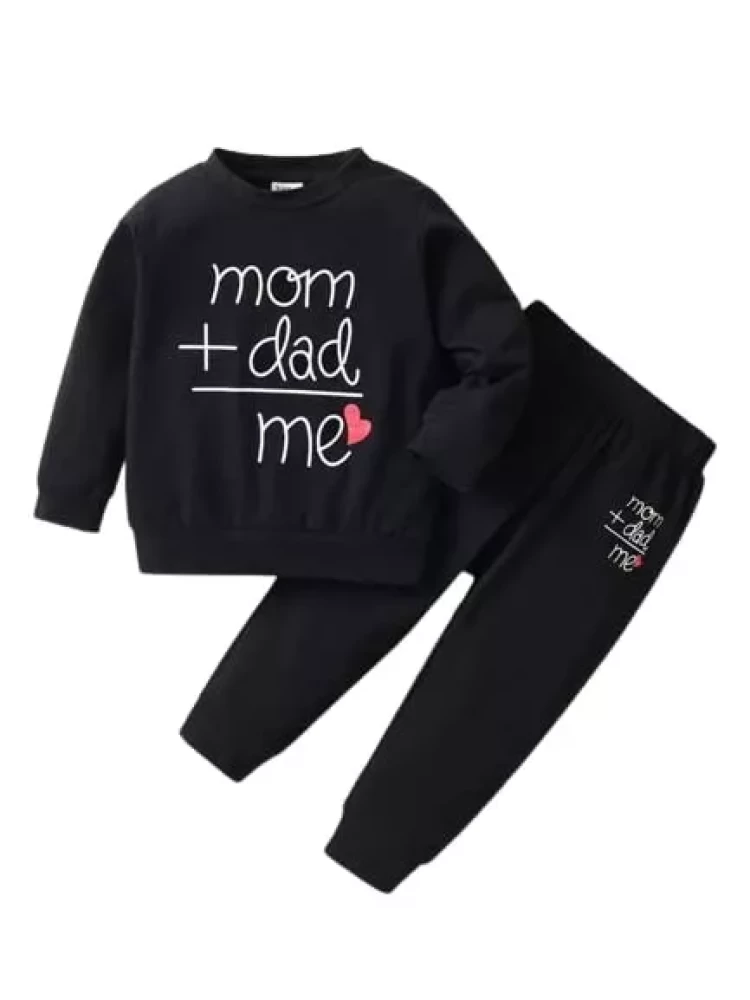 Ameeha Kids Cotton Mom dad Printed Black T Shirt with Pant