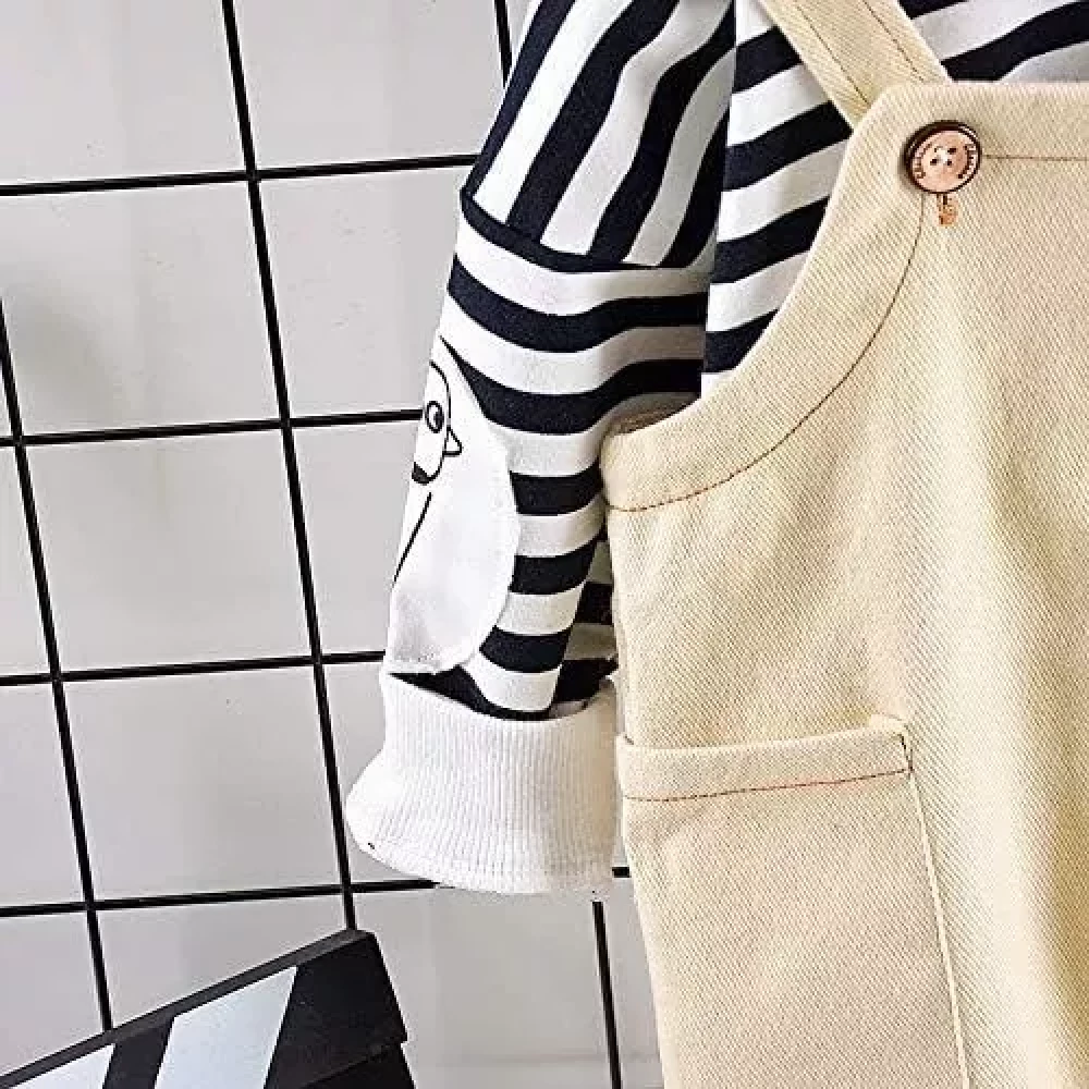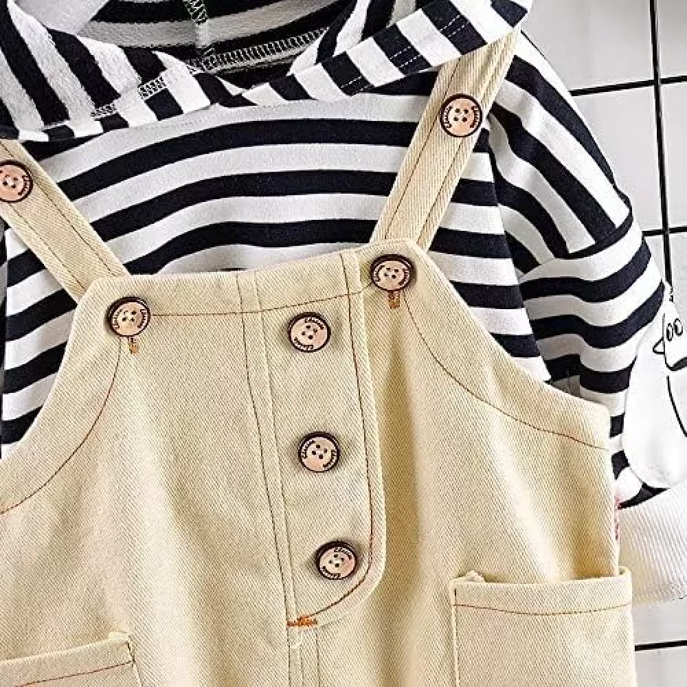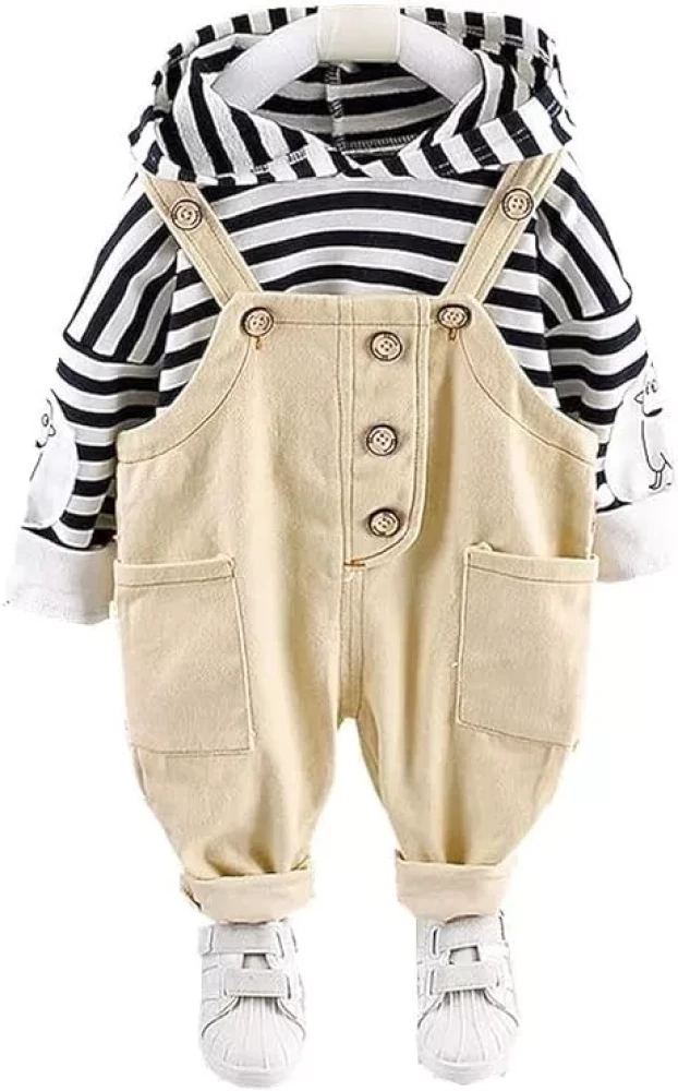 Ameeha Kids Wear Stripe Hoodie Top Long Sleeve Shirt+Suspender Pant Pocket Overalls Clothing Sets for Boys and Girls, Package Include: 1x hoodie + 1x khaki pant. for kids boys & Girls