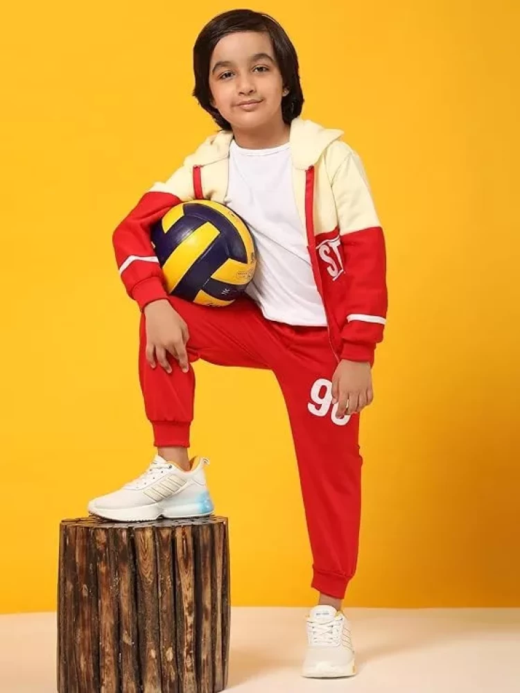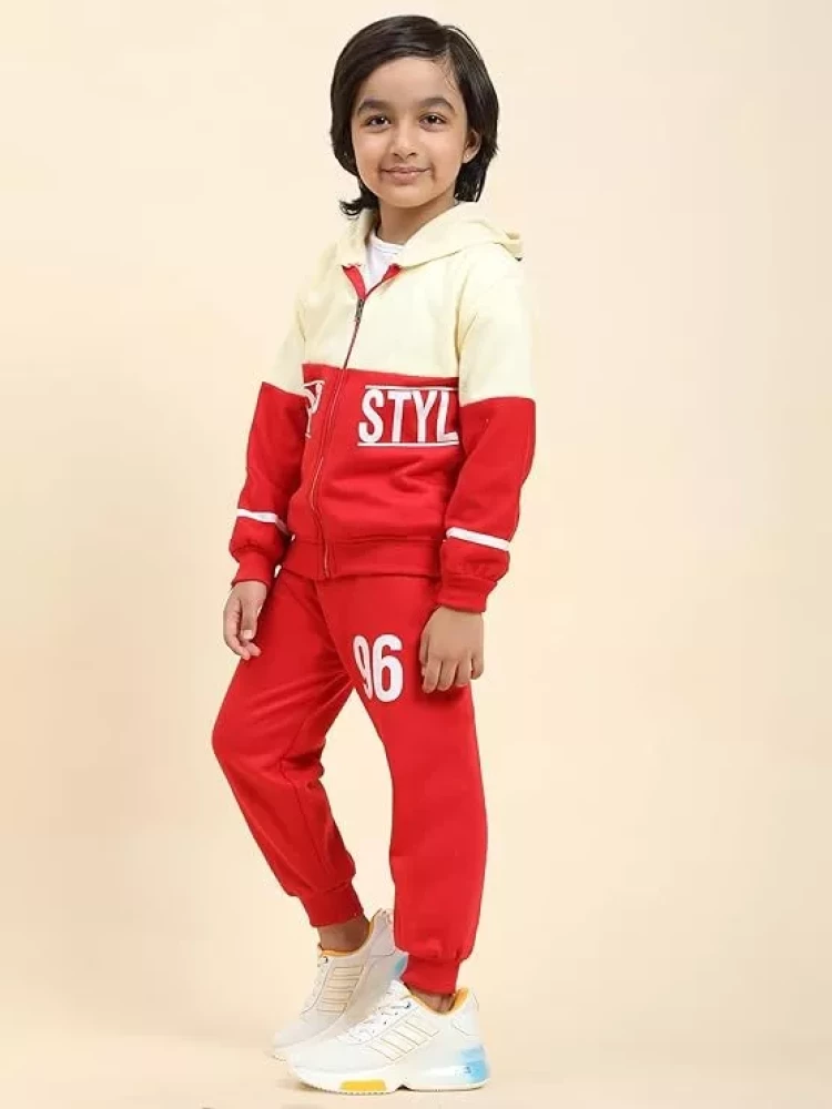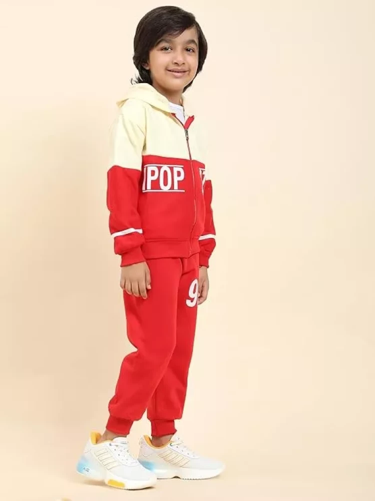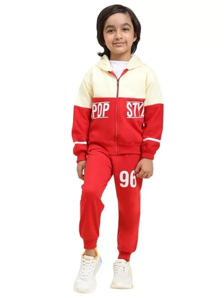 Ameeha Kids Winter Wear 2 Piece Hooded Sweatshirt and Jogging Red Clothing Set for Boys And Girls