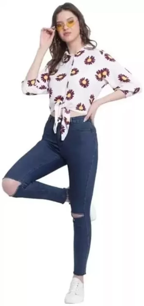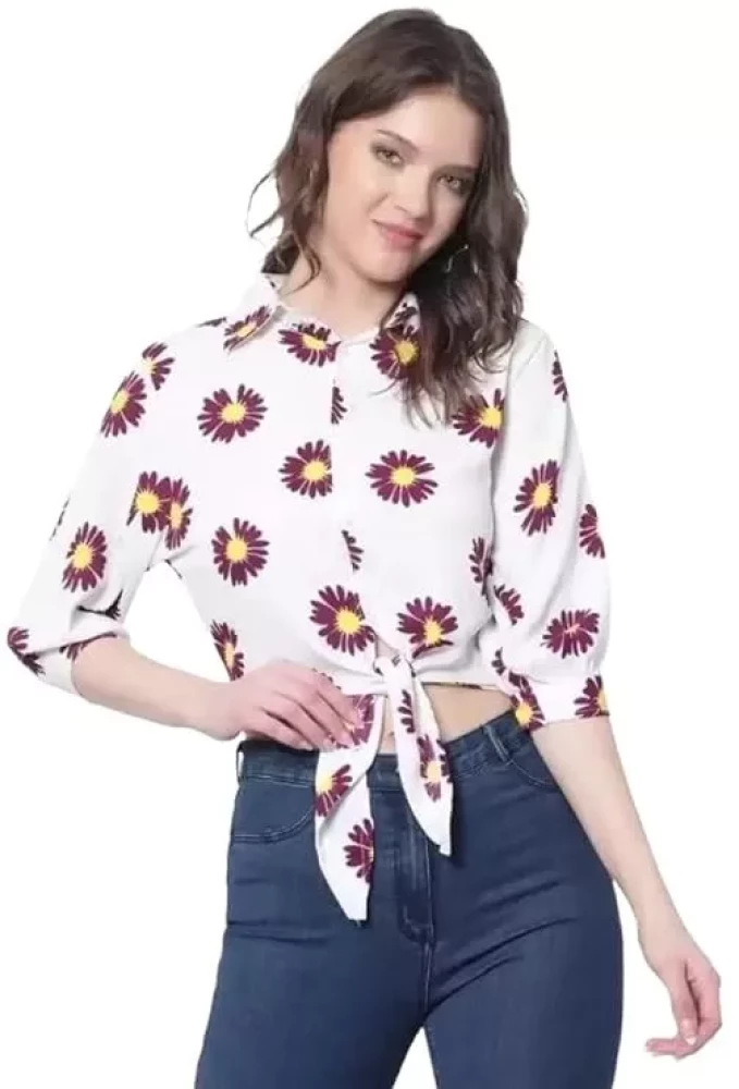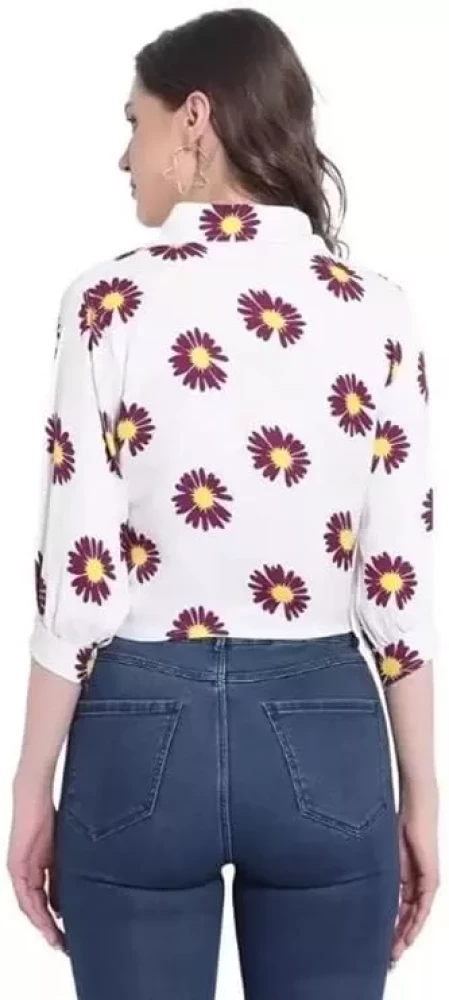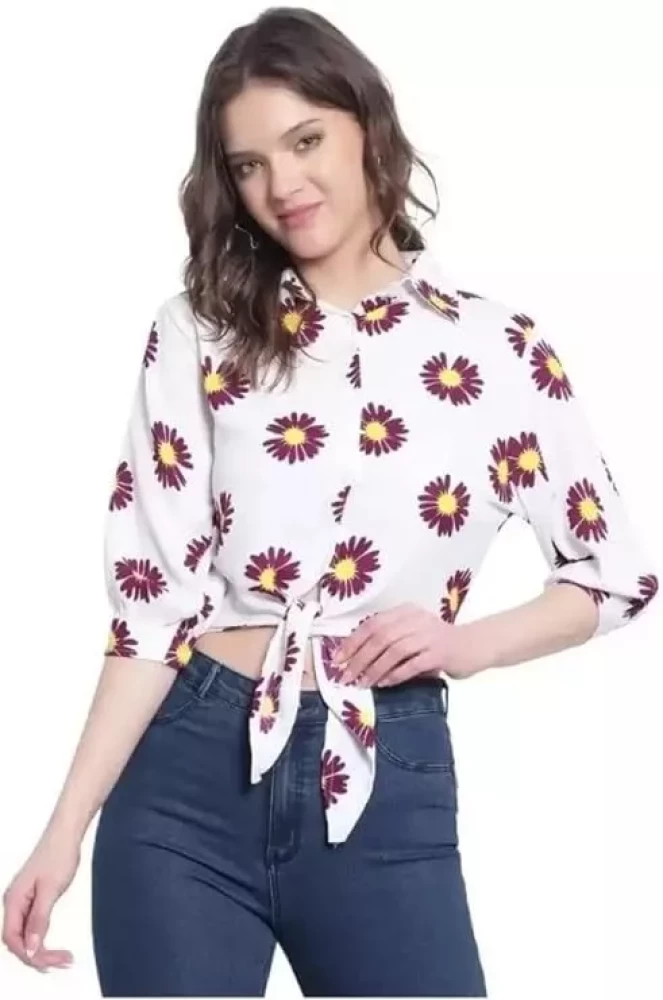 Georgette Fabric Casual Regular Sleeves Flower Printed Women Top Party, Occasion and Western Wear Top. Combine this Top with Jeans/ Jeggings/ Leggings for a rich bold experience. It's the Perfect party/ casual wear that will lend effortless to Your Style.