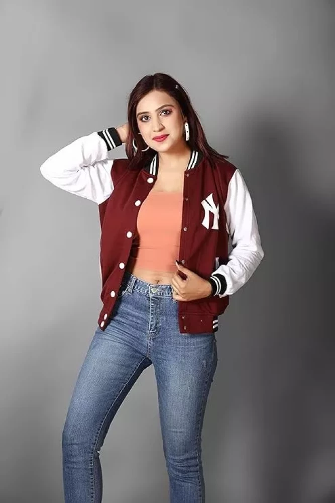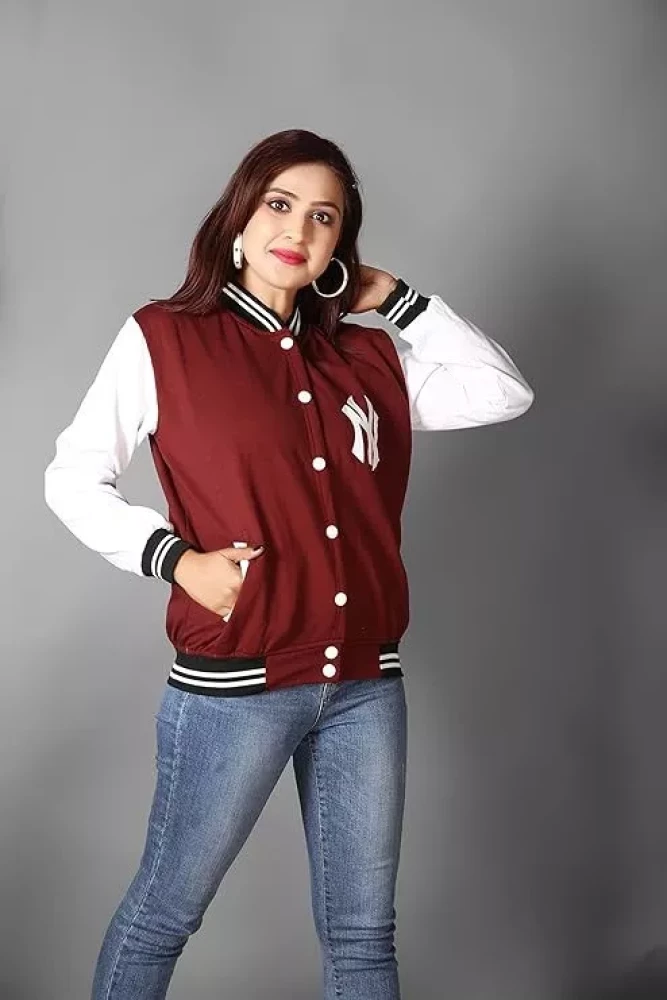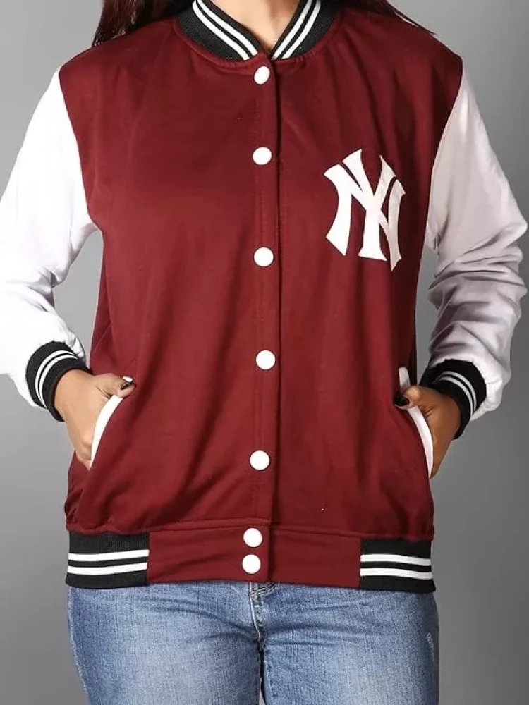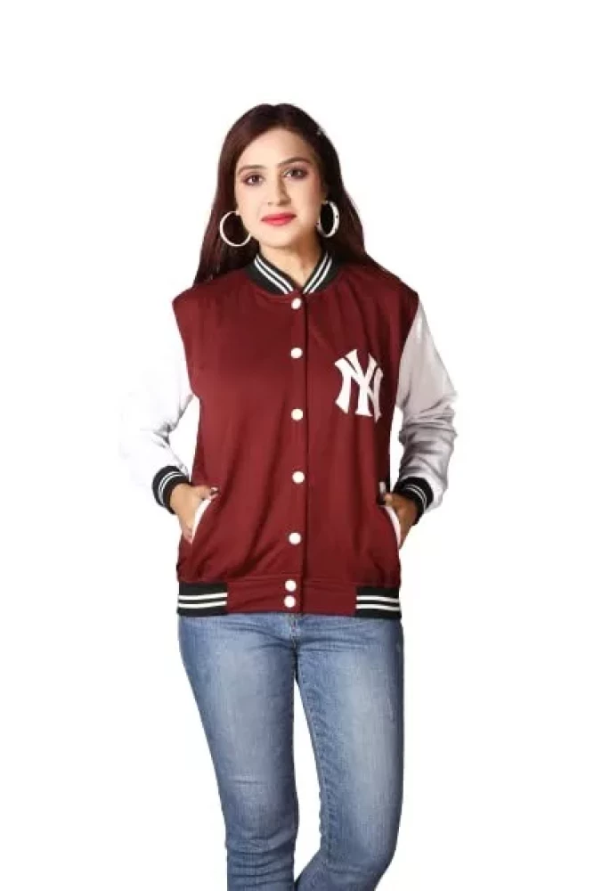 Ameeha Stylish Varsity Maroon Jacket for women