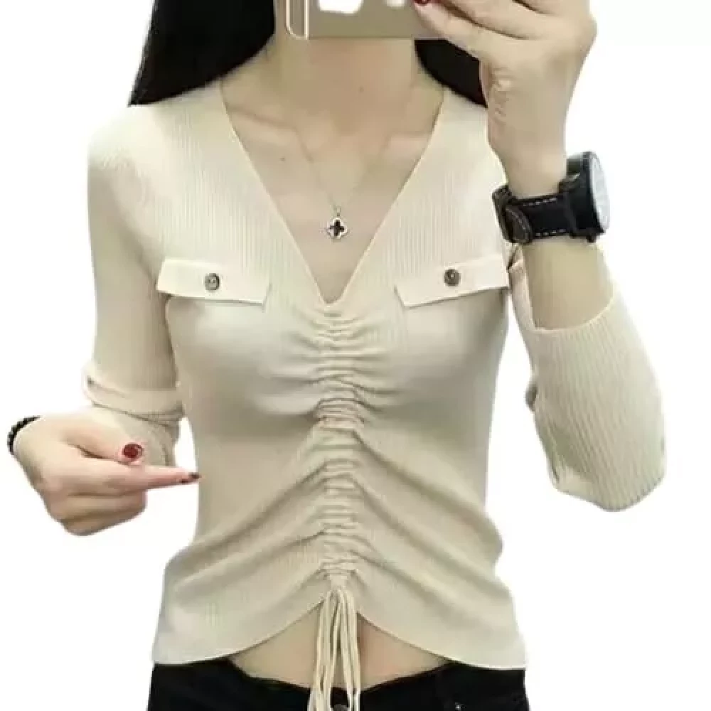 Ameeha Stylish Womens Long Sleeve V Neck Cream Top