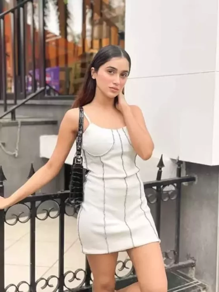 Hosiery Fabric Ethnic Dress For Women Mid Thigh Length, Party Wear Dress For Women Off White Color. Sweetheart Neck, Sleeveless and Above Knee Length Off White Color Dress.