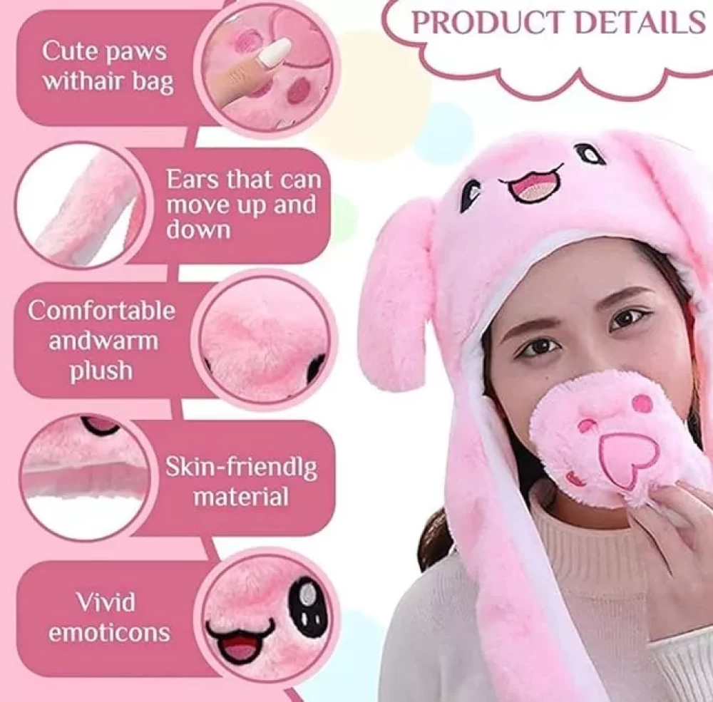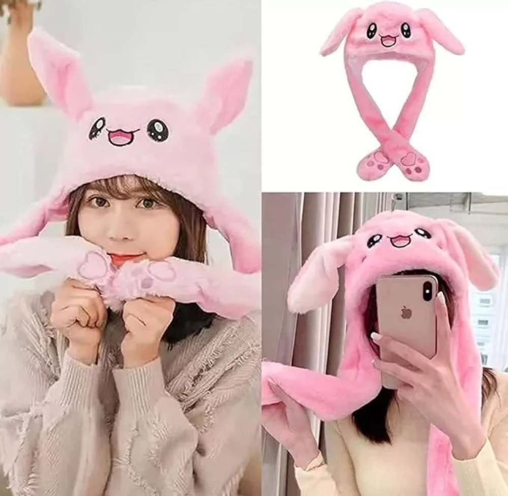 AMEEHA Winter Rabbit Pink Hat Ear Moving Jumping Hat Funny Bunny Plush Hat Cap for Women Girls