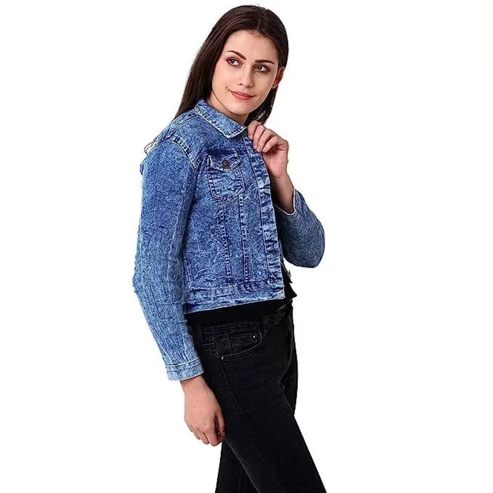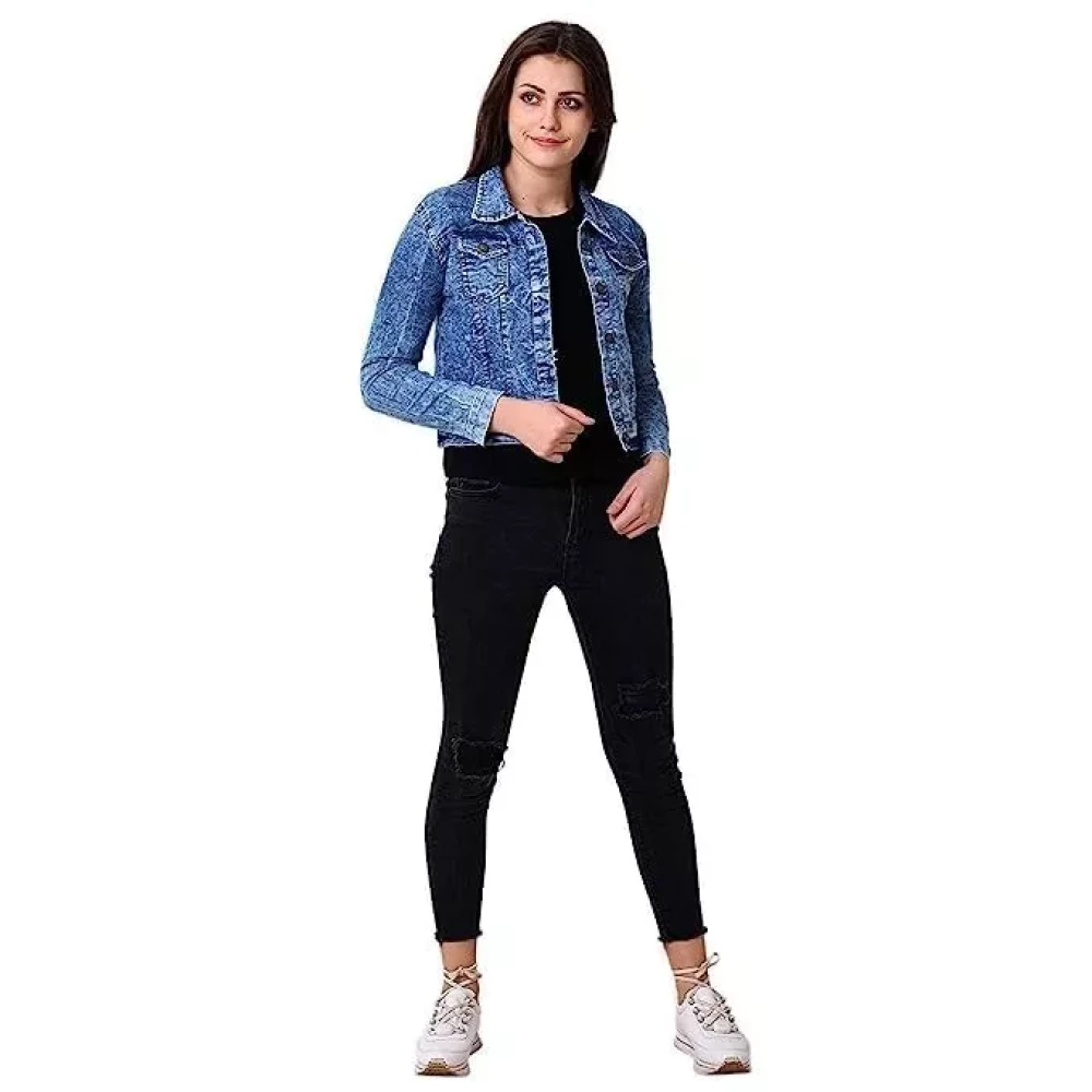 Ameeha Women's Collared Full Sleeves Solid Buttoned Cotton Denim Jacket