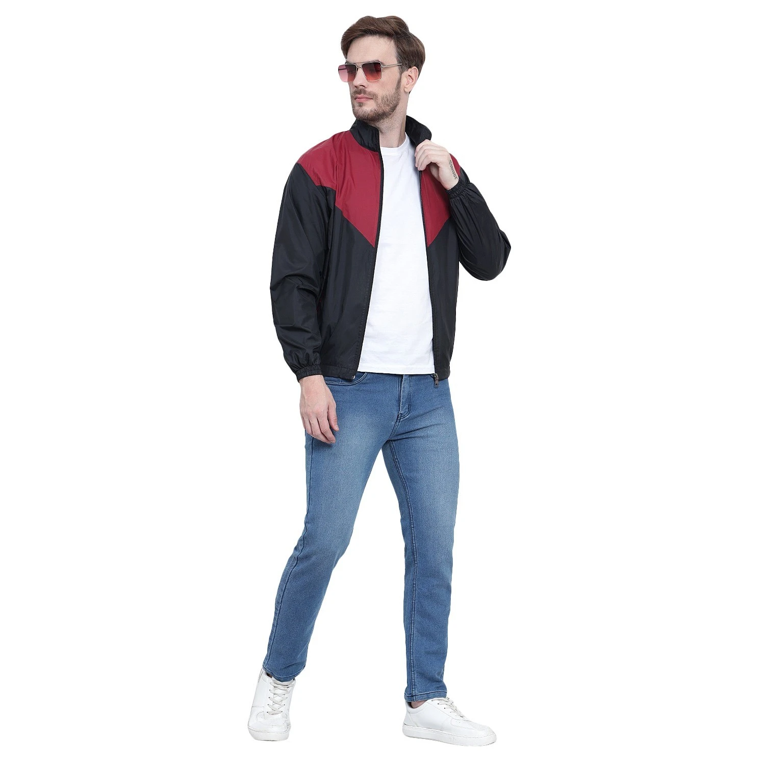 AMPLE ITALIA Men Windcheater Black and Red Jacket