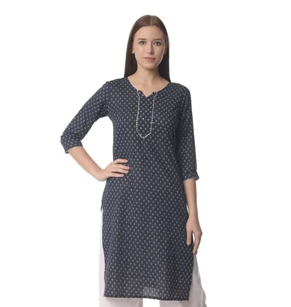 Woman Dark Blue Solid 100% Cotton printed Kurta