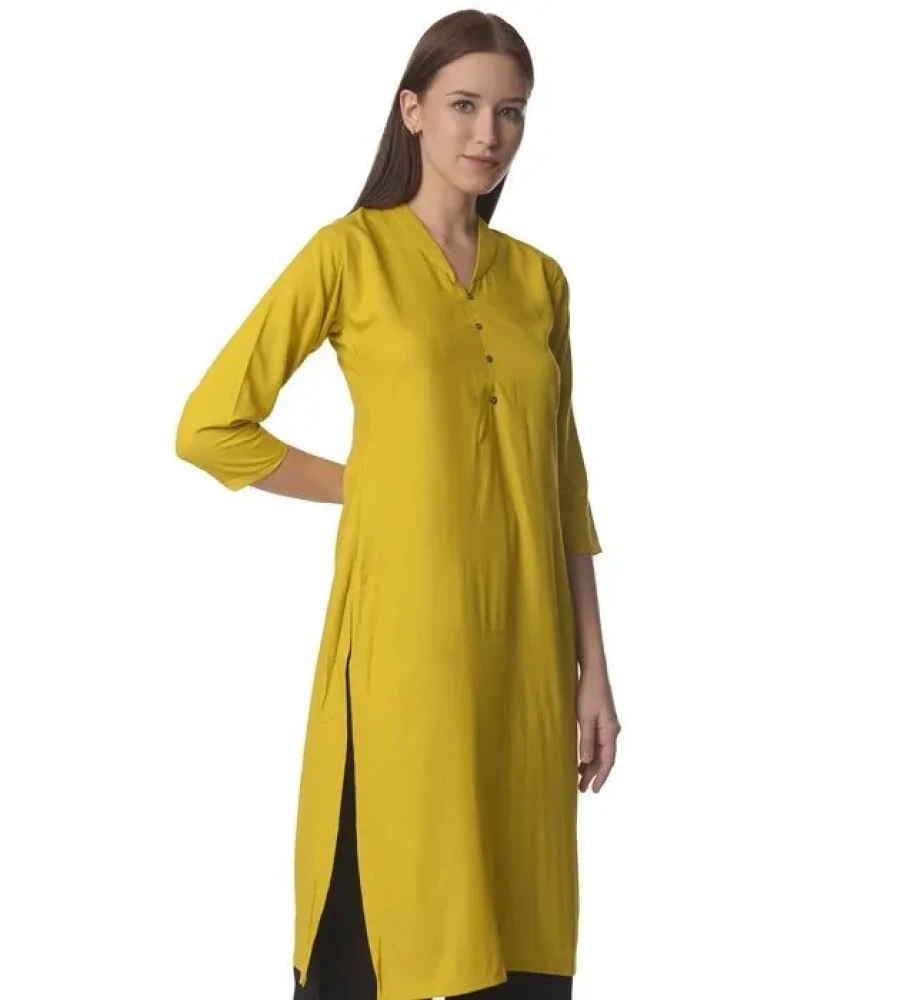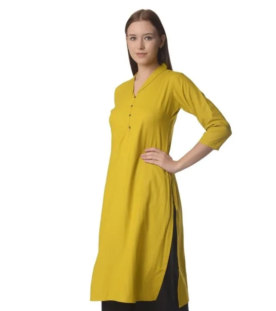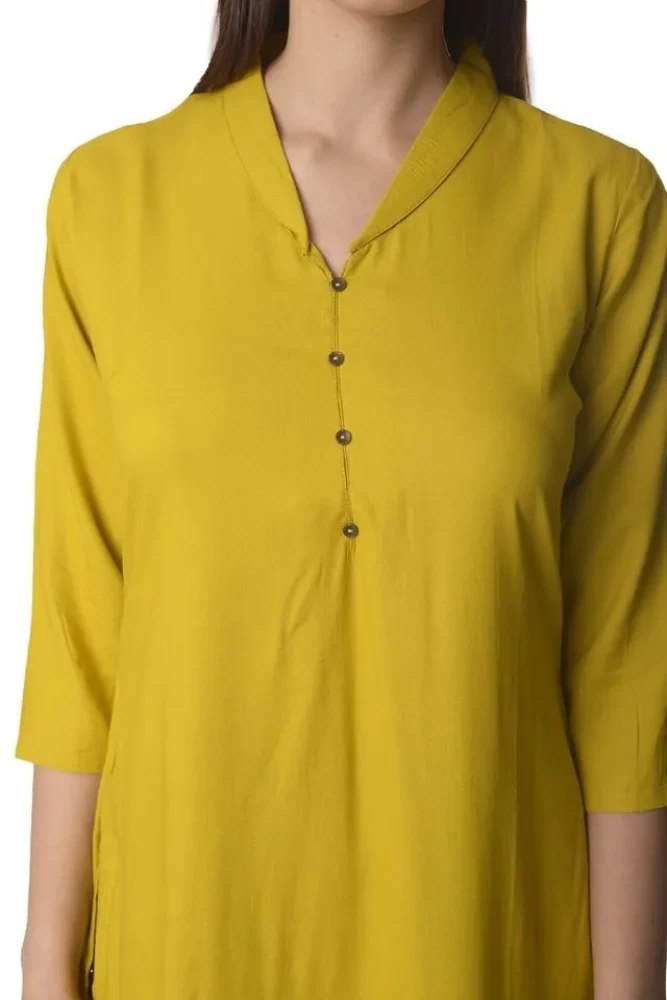 Introducing our Woman Dark Yellow Solid 100% Cotton collar Kurta, a timeless addition to your casual wear collection. Crafted from pure cotton, this kurta ensures breathability and comfort, making it perfect for everyday wear.