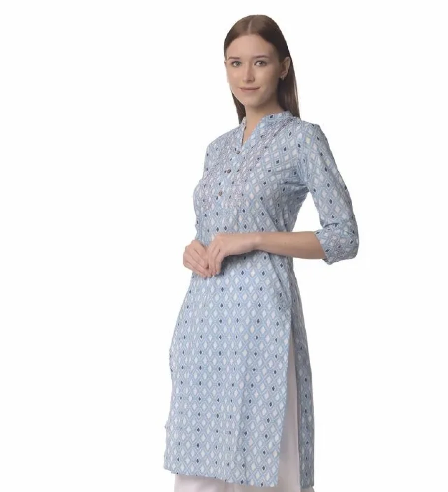Elevate your festive wardrobe with our Woman Blue Solid 100% Cotton printed Kurta, a perfect blend of elegance and comfort. Crafted from high-quality Cotton Rayon fabric, this kurta ensures a luxurious feel against your skin. The vibrant Blue color and solid pattern exude grace and charm, making it ideal for festive occasions and parties.