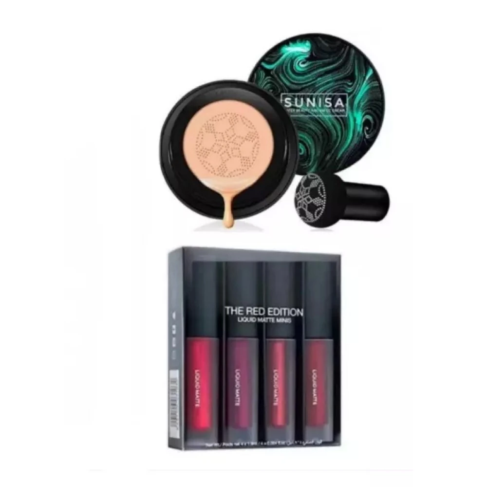 Introducing the Beauty Phoria Sunisa CC Foundation with 4pcs Matte Me Liquid Lipsticks—a luxurious combination that takes your makeup routine to new heights. This set brings you the best of both worlds with the Sunisa® Mushroom Head Make-Up Air Cushion BB Cream and a selection of four Matte Me Liquid Lipsticks in gorgeous shades, creating a perfect harmony of foundation and lip color.