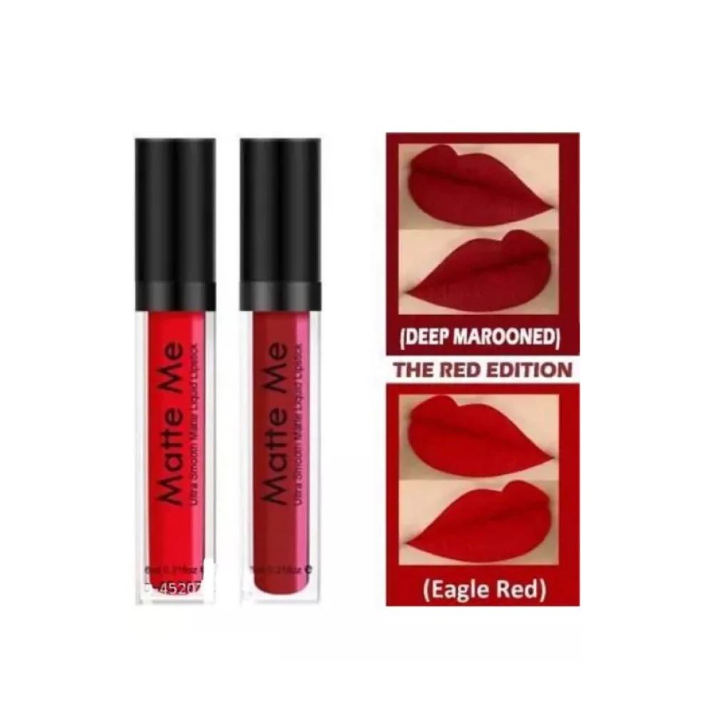 1. Liquid Matte Me Lipstick Set of 2 - Red and Maroon: