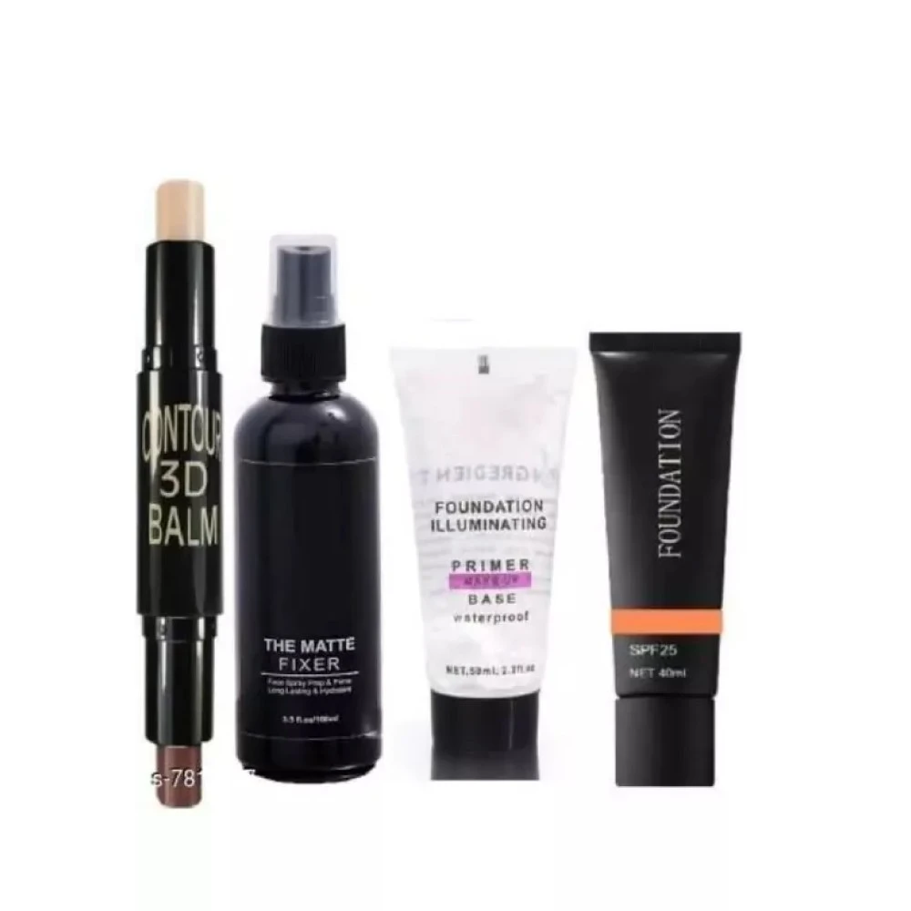 • The set includes four essential items – Makeup Fixer, Primer, Foundation, and Contour Sticks – ensuring a complete and professional makeup application.
