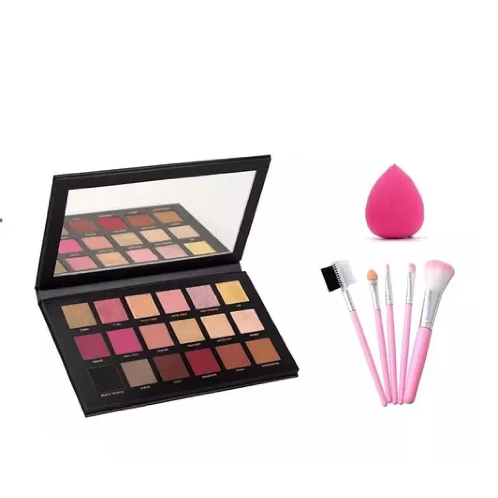 Product Name : Rose Gold Eyeshadow (18shade), 5pcs Makeup brushes with Puff